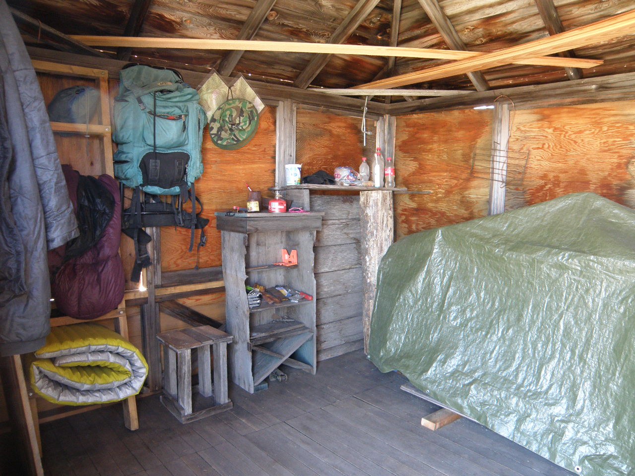 Check the Forest Service registration at the T.H. before heading up to see if anyone else is staying. Scan the parking lot, signing in is voluntary and not everyone does it. If space is in doubt bring a tent, 3 or 4 can sleep on the floor currently, there is construction material taking up about a third of the room.