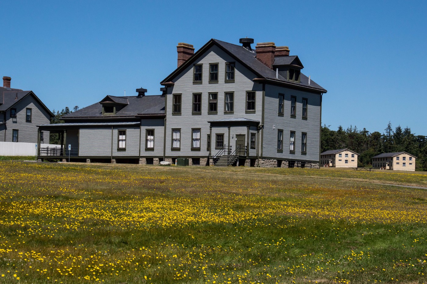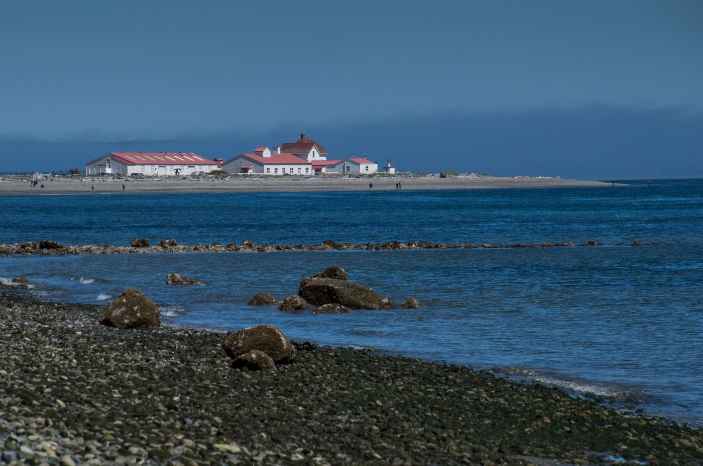 This is one of my favorite beach walks and perfect for the daytime low tides of spring and early summer. We started the hike at the campground, ample parking if you get there in the morning. We followed the beach all the way around Point Marrowstone, where there is a light (not really a lighthouse) and a USGS ocean research laboratory. Continuing around the point, there's even more beach. We left the beach via a short trail by Battery Wansboro. From there we wandered through the old fort buildings, most with beautifully renovated exteriors. We picked up the Bluff Trail and followed it all the way back to the campground. There's plenty of history here. You can wander all through the old gun emplacements. Fort Flagler has a network of trails that wander all through the wooded upland areas. But the beach walk is the best.