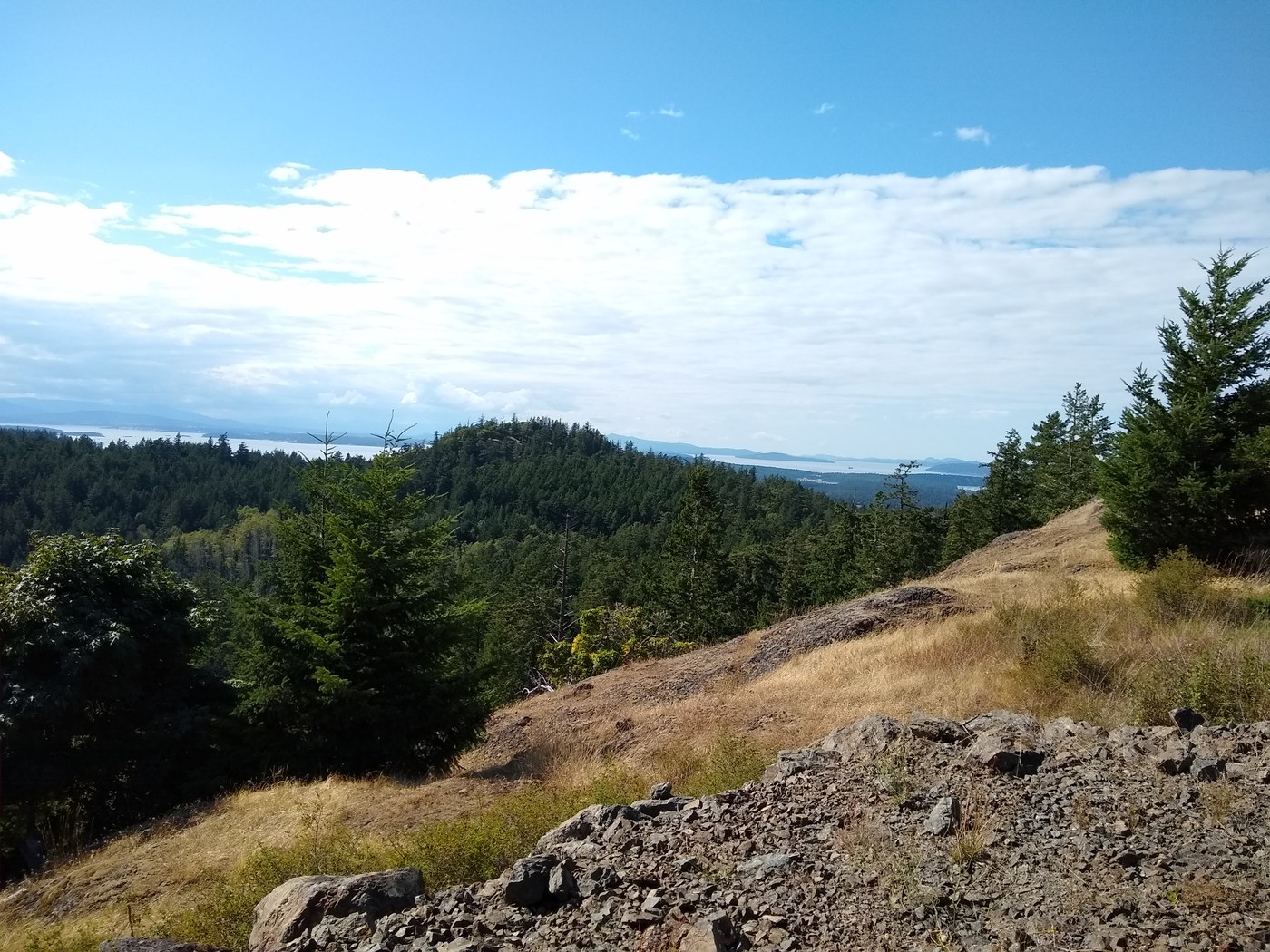I've been visiting San Juan island for years but just learned about the mount grant trail. Its new, in very good shape and, although relatively short, has enough vertical to make it aerobic. Great views from the top!