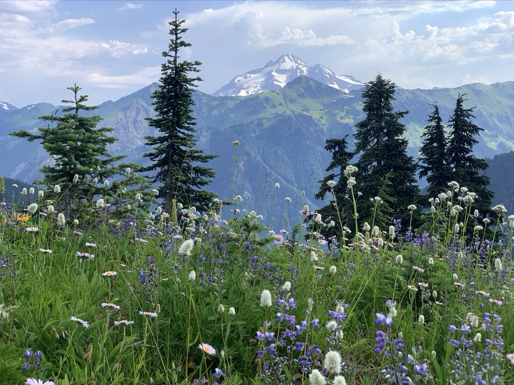 We did the full loop over 3 days. The bugs were bad the whole time (mosquitos and biting flies). We never really took breaks while hiking to avoid getting bitten. The flowers and views were beautiful! The first day we hiked up to White Pass, the second day we hiked to Little Blue Lake. We took the lower path to Little Blue Lake; It was a bit overgrown and there were quite a few snow fields still to cross. We didn't have cleats but we did each have a pole. At the end we had to cross a log over the Sauk river. The log crossing the river is easy, but you also need to cross another log after that which is more narrow (you sort of have to do a one legged squat to get up on it). This one is a bit more iffy. It may be worthwhile to check it out on the start of your loop (a tiny detour) so you know what you'll come to at the end. Worth the trip, though we were definitely exhausted at the end!