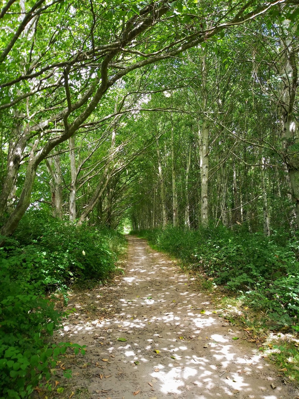 The trail is very flat and hard packed dirt along this stretch. No rocks or roots to worry about. And, we sure appreciate the shady areas within sight as the day got warmer.