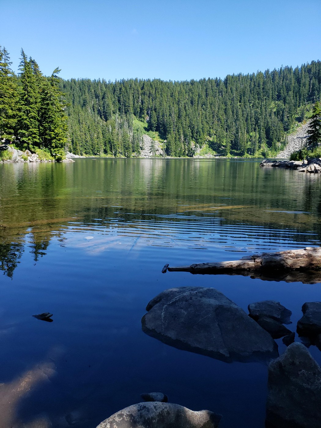 At 2.78 miles, you'll come to a split. To your right is Bandera Mountain. We went left to Mason Lake and Mt Defiance. At just over 3 miles, you'll finish your initial ascent and begin a nearly half mile 200 foot drop to arrive at Mason Lake. Gorgeous lake, but be careful sitting too long as mosquitoes and horseflies like snacking on you.