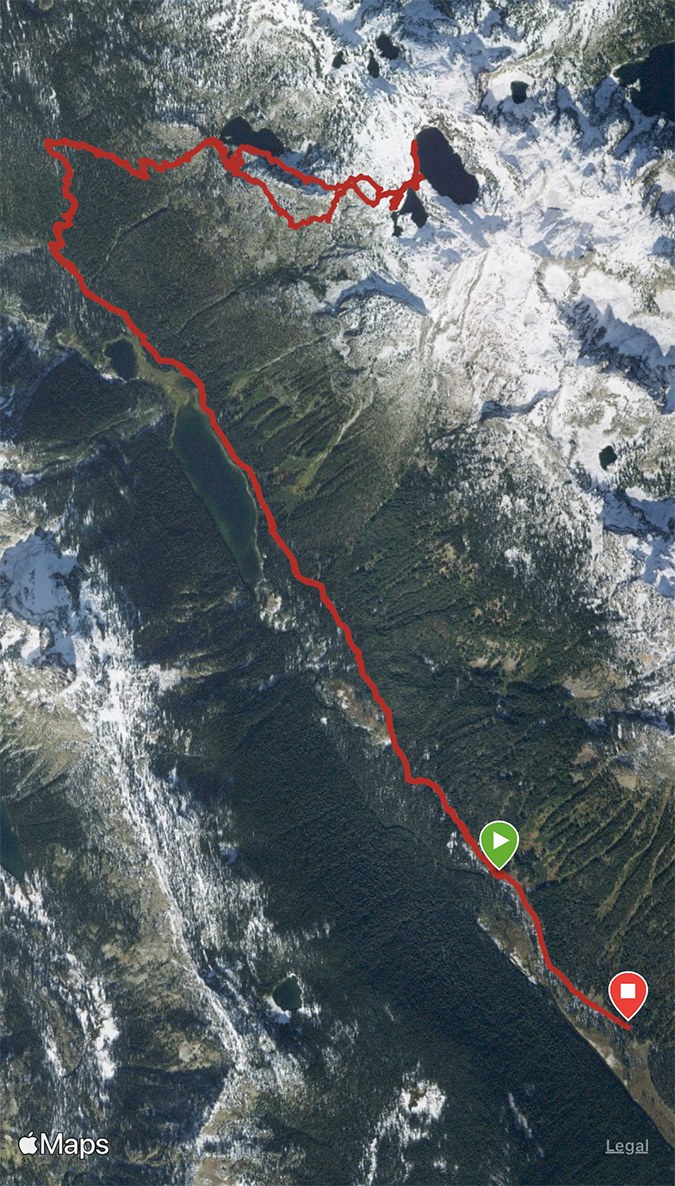 Day Three – Robin Lakes to Trailhead: We said goodbye to this treasure at 9:30 AM. About 800 feet of distance below the ridgeline, you’ll see a trail in a grassy patch. Do not take this path. Read on to see why.