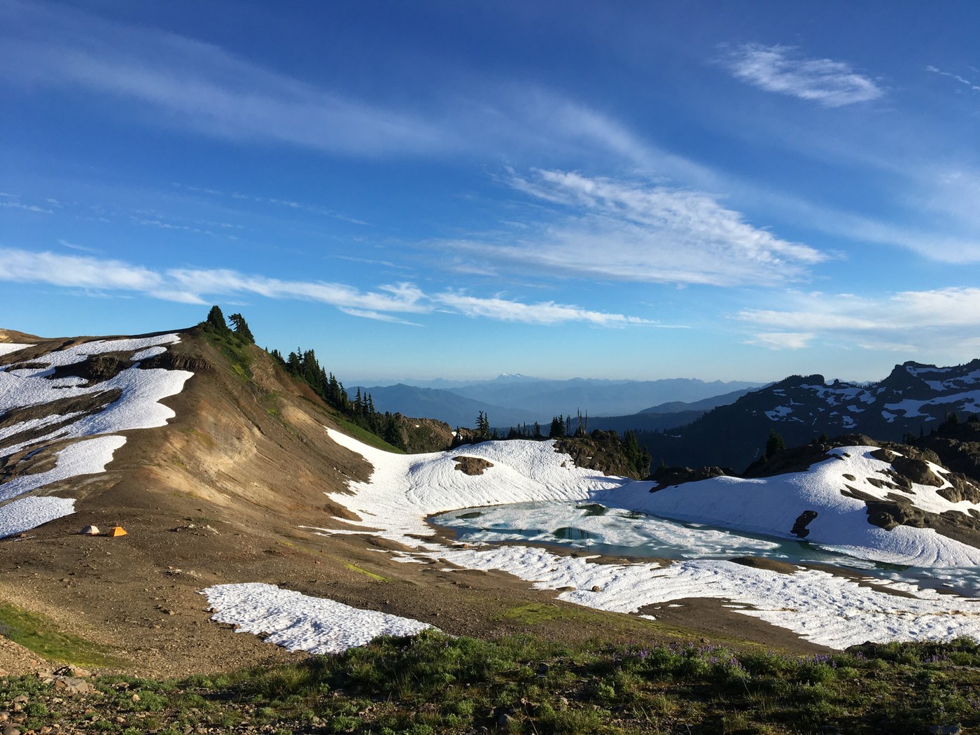 Goat Lake: Is mostly melted. The side trail to the lake is about 1-1.5 miles to the lake. It's a beautiful side trip if you have time and don't mind a little more miles/elevation. See notes below about camping spots near the lake.