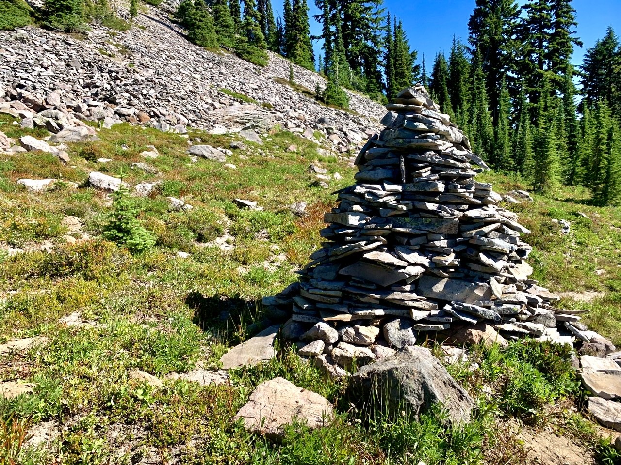 We hiked from the Snowgrass Trailhead to the junction with the PCT. Forest Road 21 still has a lot of washboarding, it’s suitable for all cars, but if you have a sedan like mine it’s probably best to take it slow. We hiked it south to a bluff we’ve camped at before. Two of our party were just in for a day hike, so we set up camp and showed them to the Bypass trail 3/4 of a mile from our camp. We camped and hiked around Goat Rocks in 2017 during the terrible wildfires from Canada to California, I didn’t realize how bad conditions were until we realized we could see Mt. St. Helens from our camp above Snowgrass Flat this time. We could only stay one night, but had a little time to hike up the PCT North. We stopped at the bluff across from Goat Lake and turned around. Hiked the Bypass Trail out and were happy to see the Creek you have to cross has a decent amount of logs across it to help now.