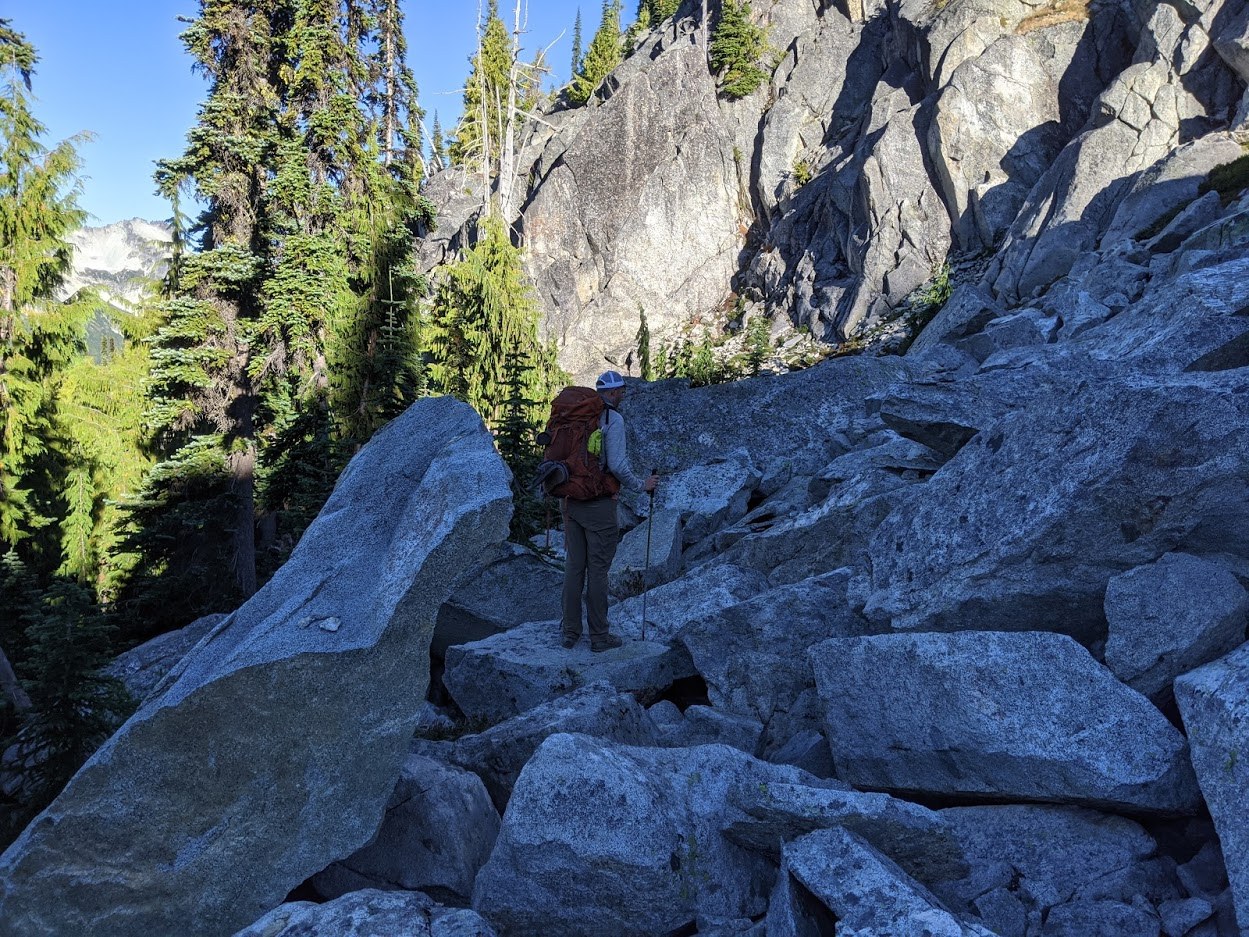 - From here, the trail becomes more challenging as you're forced to navigate by way of cairns over boulder fields ... be very careful to pay attention to the direction you take up, as this will be helpful on your way down. The best part about this section were the huckleberries, which were prime for picking and helped distract from the grind :)