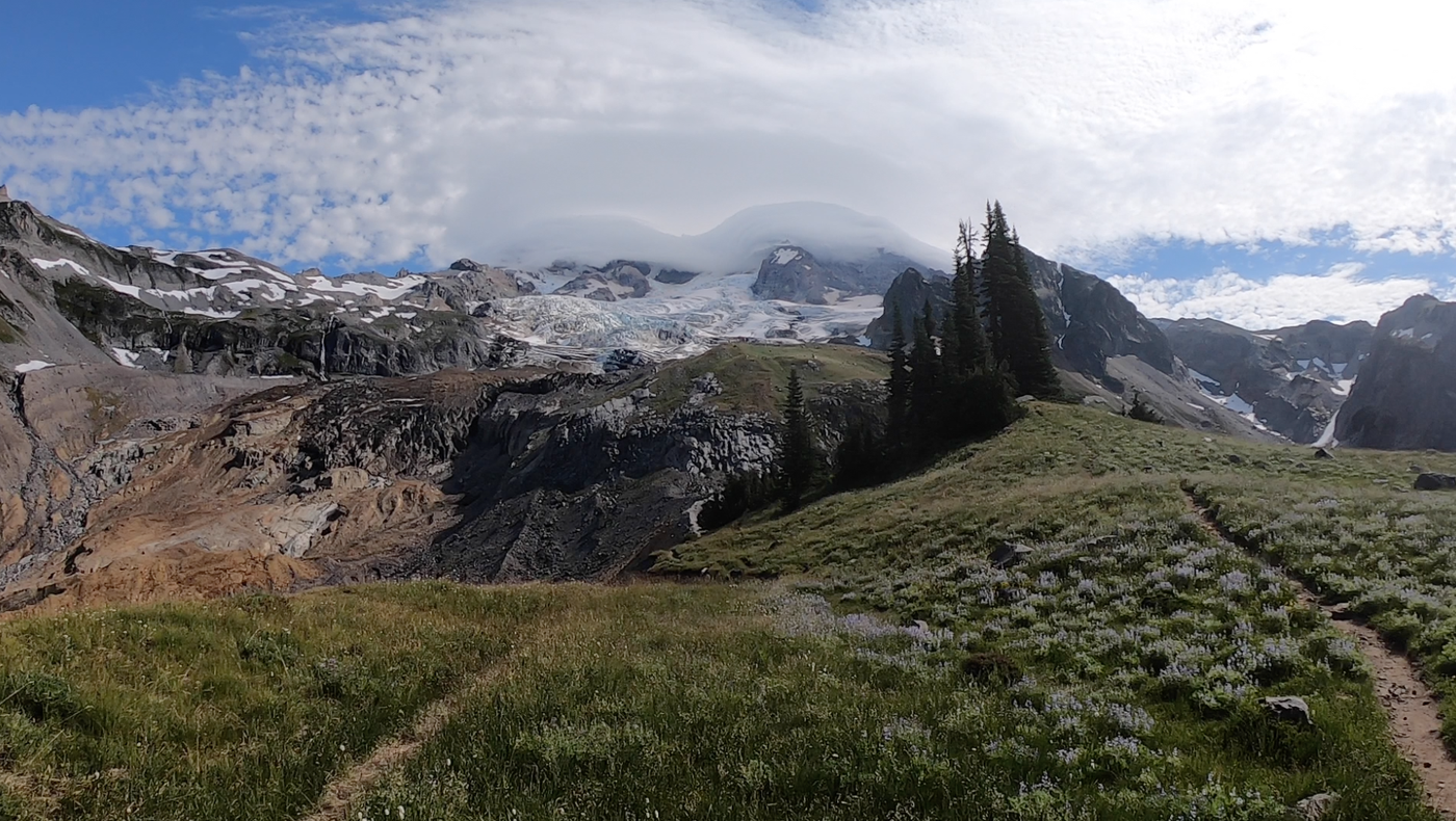 Emerald Ridge is stunning clockwise. The Tahoma Glacier carved out deeply to the north and the colors of the rock and soil are in colorful contrast to the greens and blues of the mountain sky. It is breathtaking.