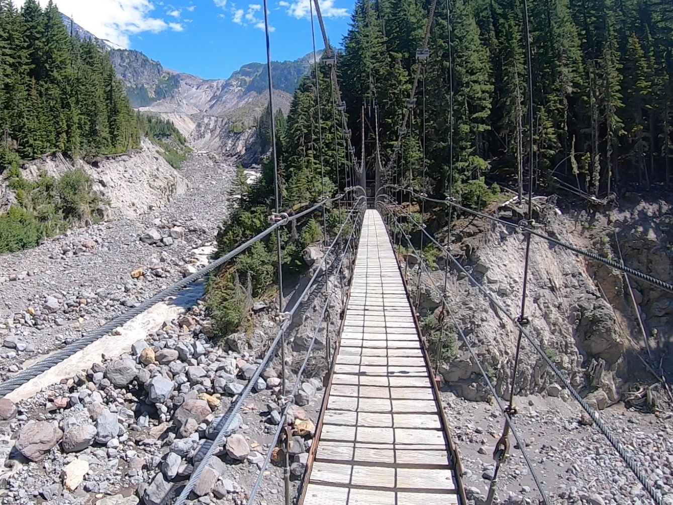Tahoma used to have an unmaintained trail that led to the Westside Rd we could rock hop or butt scoot across logs to get to but the park is really advising not too and has put up new signage this year to not go on this trail.