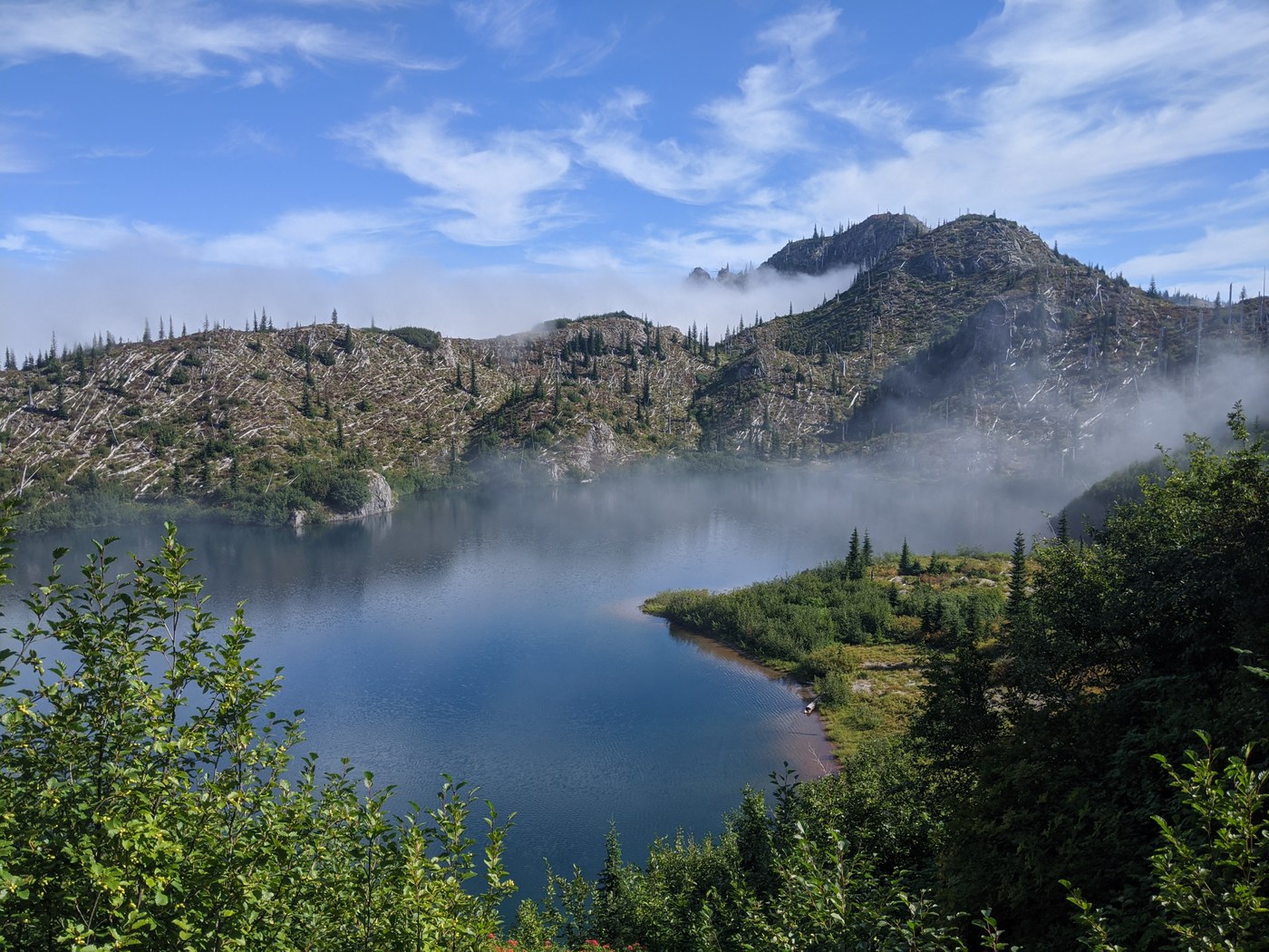 My first real foray into the Mt Saint Helens blast zone was a winner. The variety of terrain and foliage is stunning. Wildflowers and berries abounded. I enjoyed mountain goats and grouse and saw elk on the drive to the trailhead. Mt Whittier is a four volcano summit with views of Helen, Hood, Adams and Rainier and is reached by a fun two mile ridge walk/scramble. The Lakes Trail portion of the loop is also far prettier than I expected.