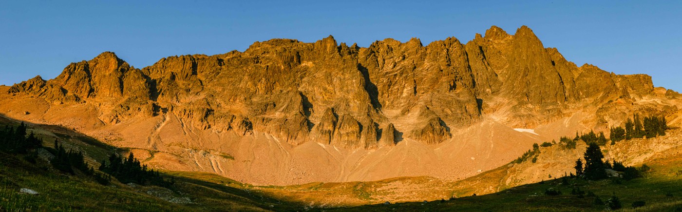 The following morning I headed back up Lilly Basin trail to connect with Snowgrass. Took a bit of a spill crossing some talus where Lilly Basin approaches the ridge, beware eroded trail here. Headed onward to the PCT to Cispus Basin. I got in late to Cispus Basin and took in a spectacular sunset. The most obvious sites were occupied, but I was able to follow a dry creekbed up the hill to some other established sites under the Goat Rocks mastiff, and a perfect distance from water.