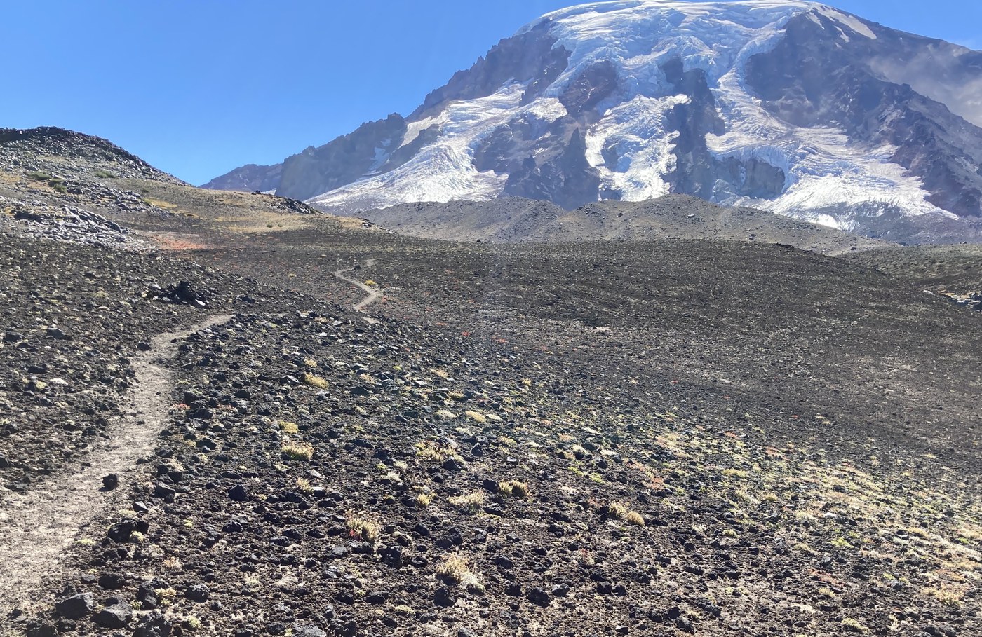 We did a slow multi day hike through Muddy Meadows trail, crossing the PCT and continuing to the Highline. The trail was in great conditions, but the air was full of smoke and there was quite a lot of wind. No campers on the cam site just before the MuddyMeadows/Highline fork and no campers at Foggy Flats. We stayed there overnight with howling winds, that pretty much disabled us from having any sort of fire.