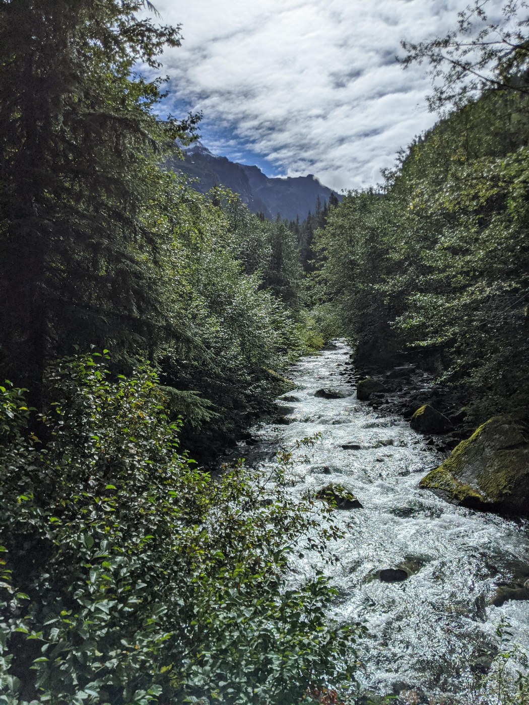 The trail itself was muddy in places from the recent rains but nothing crazy or impassable. The river was low and the log crossing dry and simple.