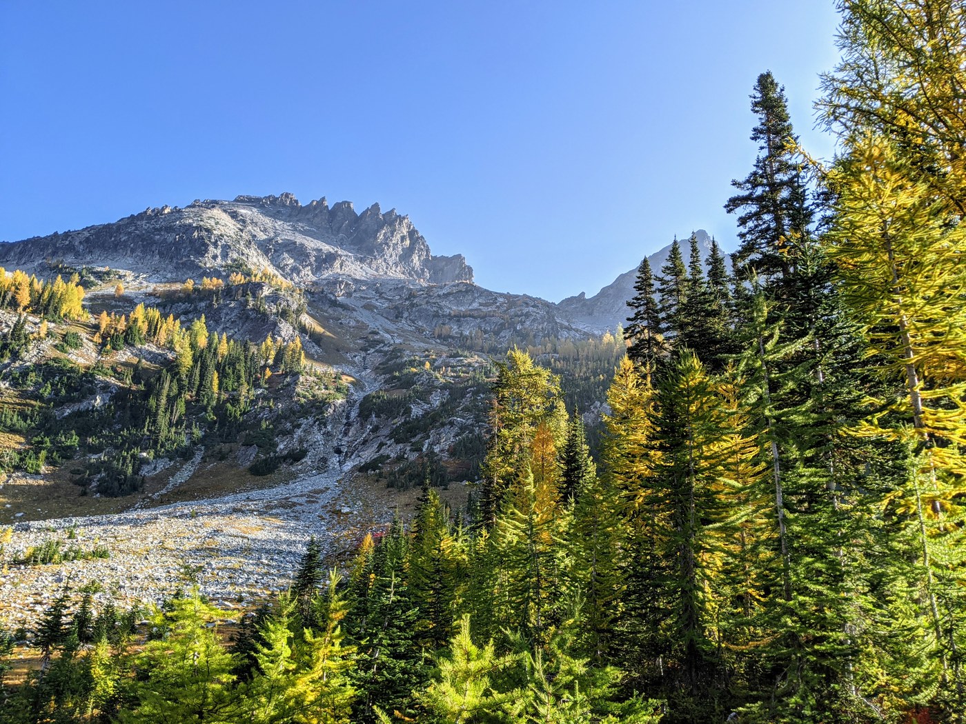 We went down the same way we came up and were back at the trailhead by 5PM. This trip was a success and very lovely overall. I really loved seeing the golden larches and alpine views in the fall season.