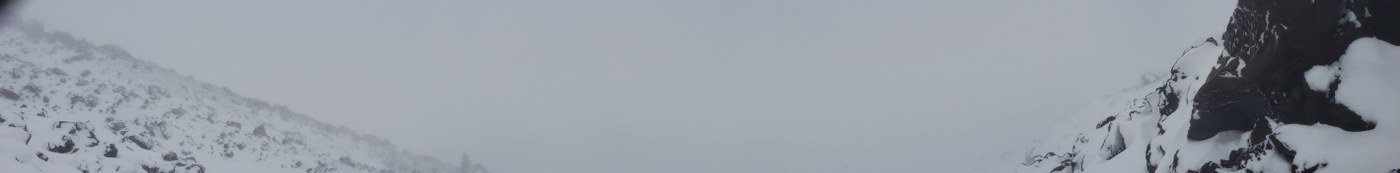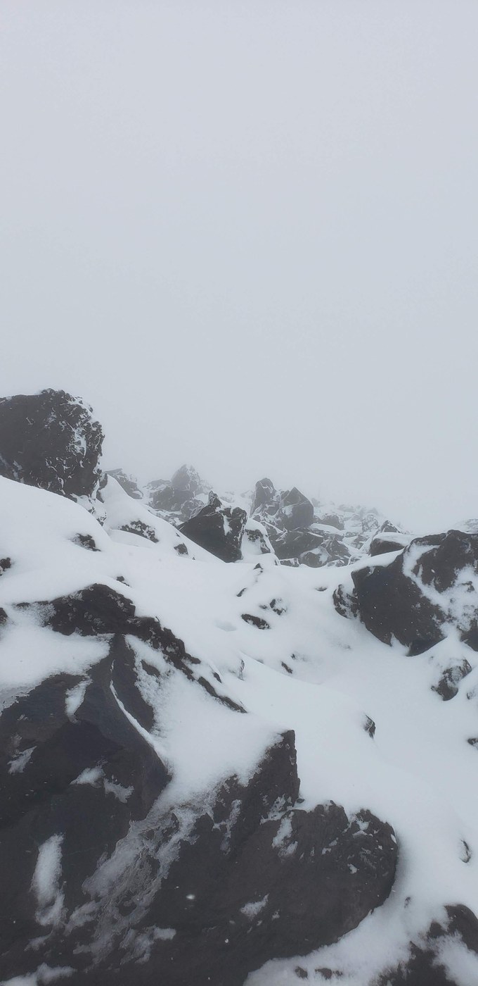 Great hike in 2 ft+ snow with 25+ mph wind, ice pellet, and snowing (white out after 1 mile of climbing the boulders). First 2 miles in the tree were mostly snow free. Light snow after the tree-line through the first set of boulders. Blazed trail after first 2 sets of boulders. Pushed on after everyone turned back. Made as far as near-vertical boulders beneath Monitor Station (6379 ft elevation according to Strava, 1821 ft elevation and 1.275 miles from the crater). Weather will be better tomorrow for climbing.