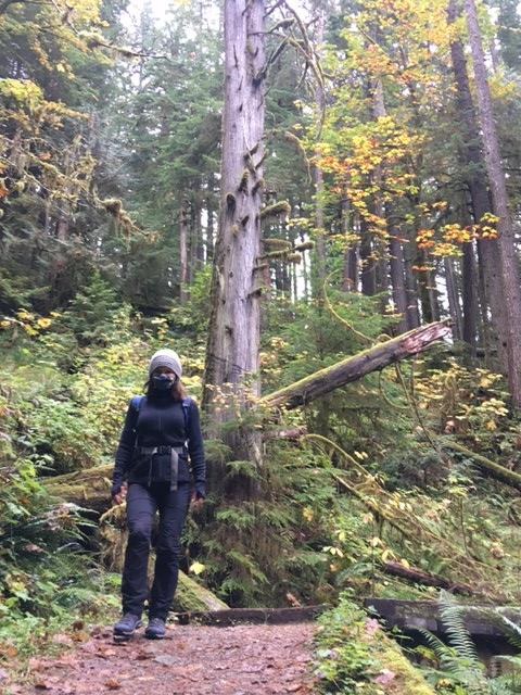 Gorgeous, colorful fall hike, even in the rain. The old-growth trees are awesome. One tree across trail, simple to navigate. Passed about 12 friendly people during the hike, nearly all wearing masks. Mushrooms are pushing up everywhere.