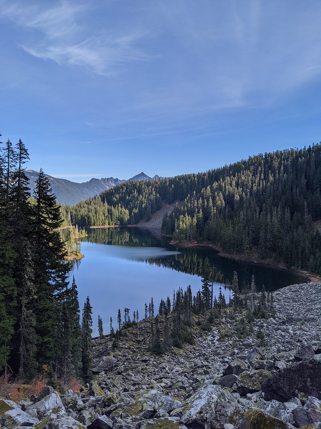 A fabulous long hike with lots of variety! Halloween was a pretty, sunny day and this trail was the perfect way to celebrate the day! We didn't see too many people, and those we did see wore masks. There are a couple trees down across the trail, but they were manageable to climb over. Lots of distance, LOTS of elevation gain, all worth it for the gorgeous lake views!