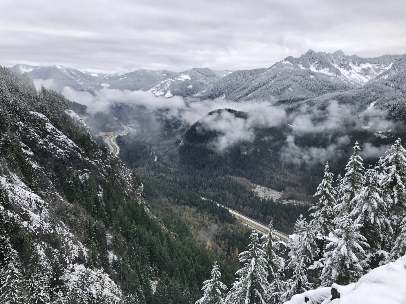 A beautifully engineered trail with many good outlooks even before the main balcony. Be very aware that this is a super popular trail. On this minor holiday weekday, the lot held 10 cars at 9AM when I set out, and I encountered just a couple hikers on the way up. But on the way down, I passed many, many parties, one with at least 20 or so young people, maybe a college group. More than 50 cars in the lot at noon. I'm no misanthrope, but the constant raising/lowering mask, fogged glasses, step-off-the-trail do-sa-do gets tiring. So, I advise going on a weekday and early morning at that. Thin covering of snow towards the top, no problem for light boots. That will change with the storm's arrival this Friday.