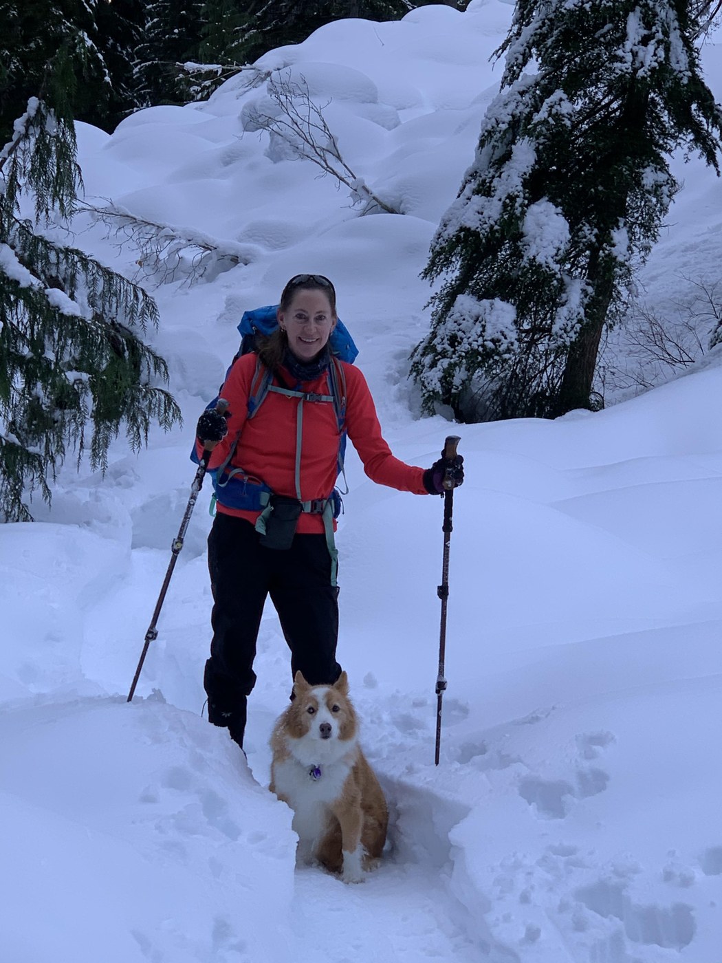 We parked in the large lot about .25 miles before the actual trailhead parking lot which only holds a few cars and will soon be challenging to get to because of snow. Two groups were ahead of us so it was easy to follow their tracks for the first couple miles but then the snow depth makes the route get a little trickier. Be prepared to navigate yourself. At about 3 miles in, we put our snowshoes on as we had started to post hole. We turned around about a half mile short of the lake as we had limited time and wanted to be out by dark.