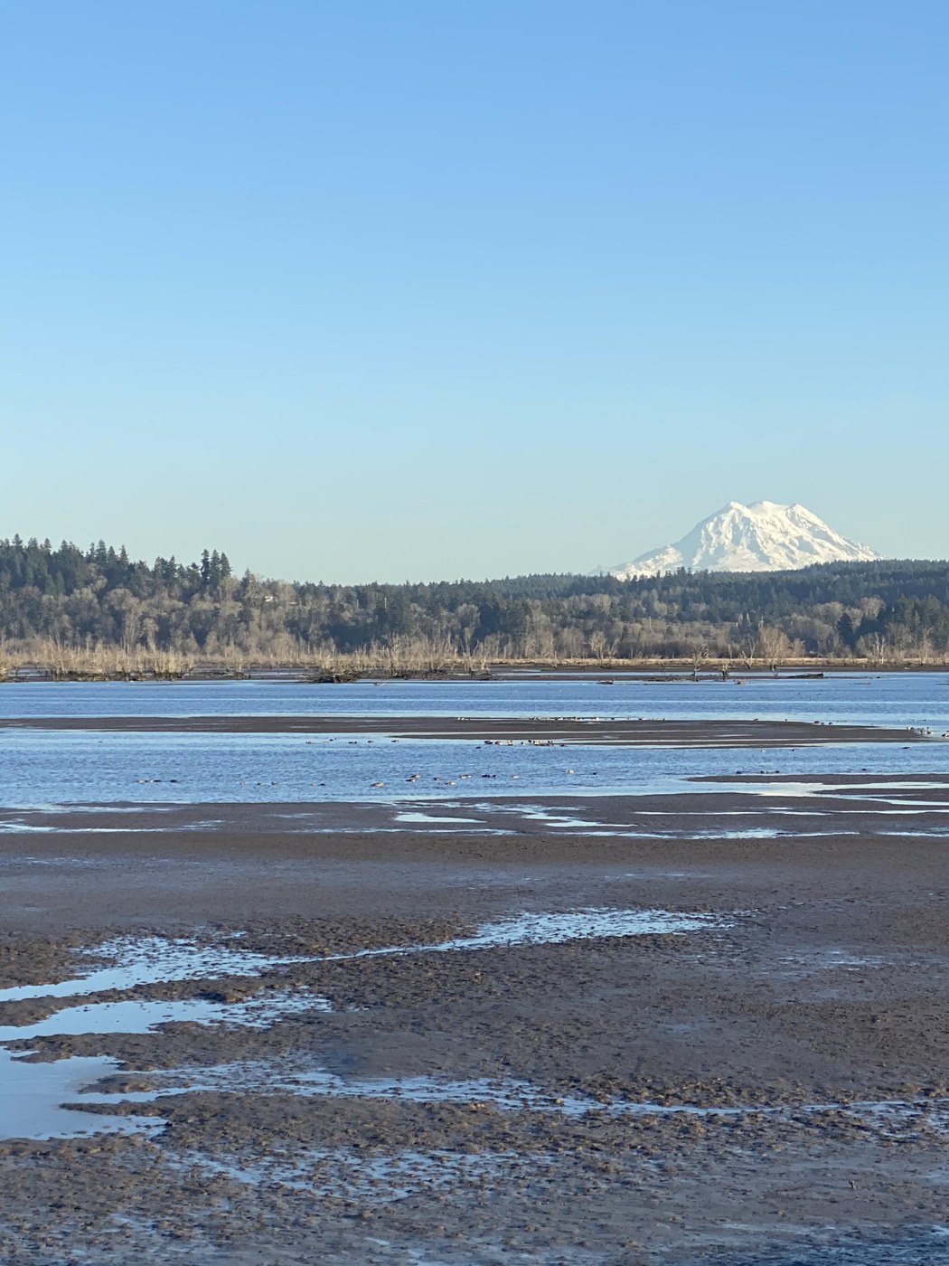 It was a beautiful clear day with a stunning view of Rainier. The animals seem very comfortable around people, especially the bids, which often let people walk up very close to them. I was able to spot a hawk today, and heard others say they saw 2 eagles.