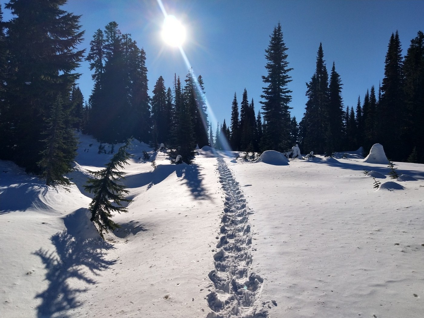 - The metal trail signs marking the various Glacier/Skyline/Morraine trail intersections on the ridge below Glacier Vista are almost-but-not-quite buried. The next snow will probably leave them invisibly lurking just inside the powder. Be very careful down the middle section of the ridge until there's been a fair bit more snow.