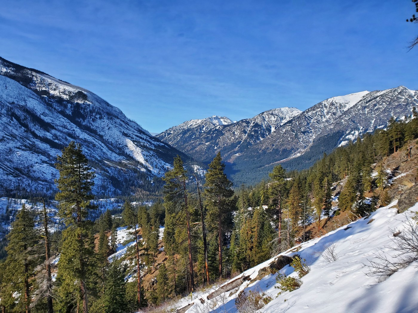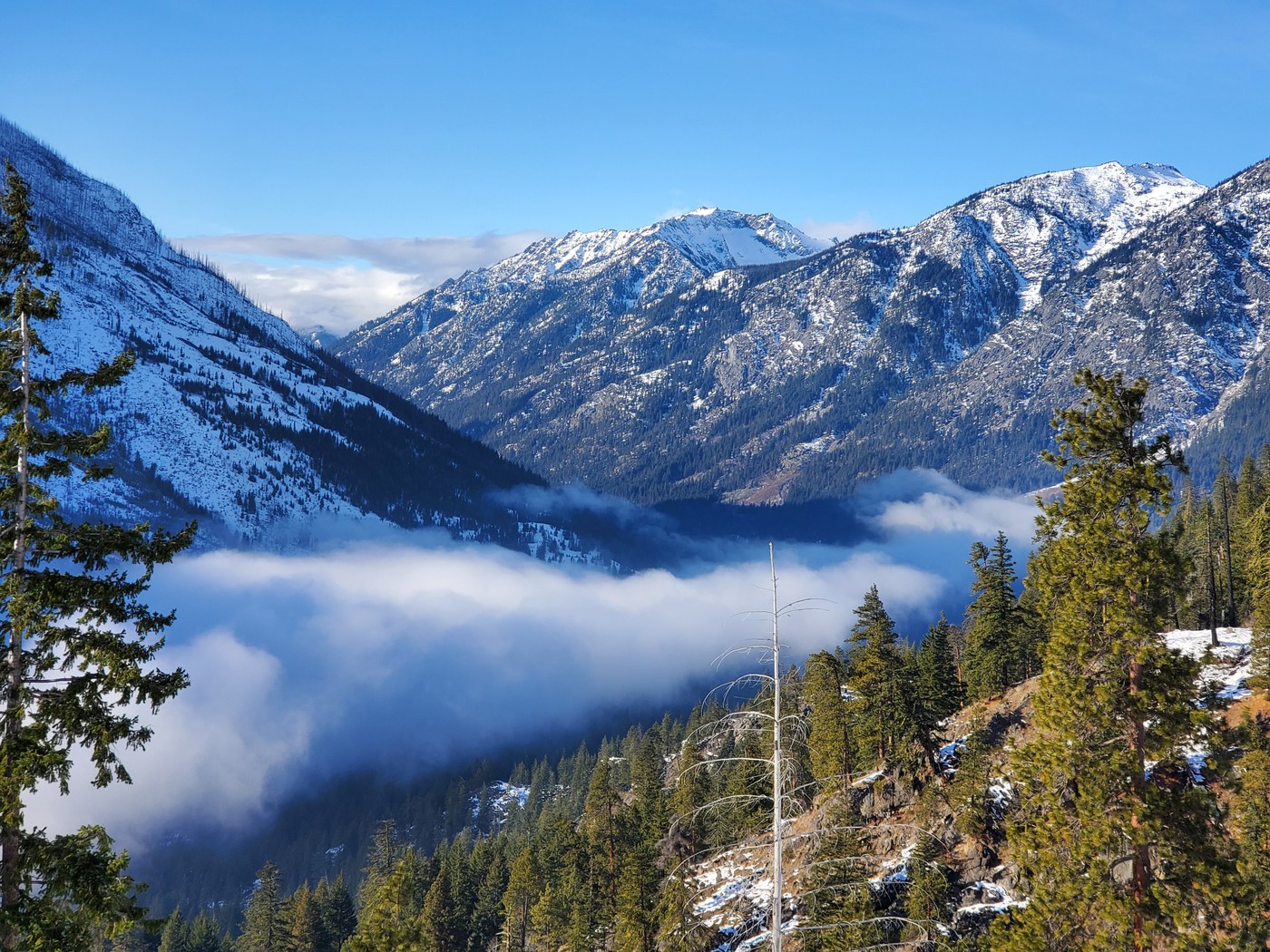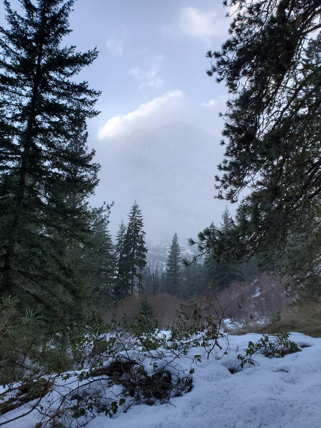 Arrived about 10:30am and hiked about 2.5 miles in before turning back. Started off beautiful blue sky day with 2 creek crossings. Beautiful view of the mountains and the valley below. Then about 12:50pm, the fog began coming in along the valley and by the time we got back to the parking lot, we couldn't see the sky.