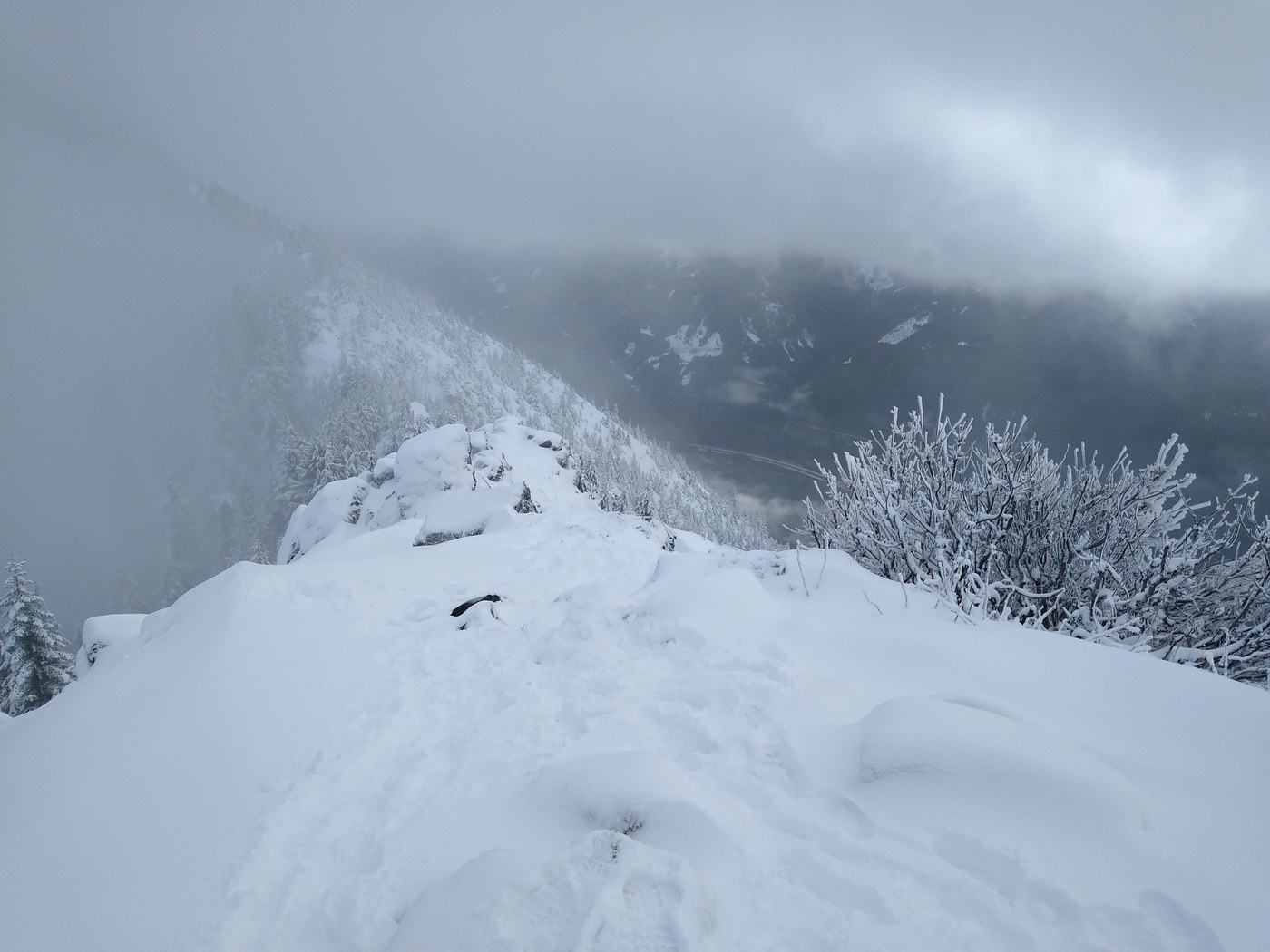 *** Mailbox Peak is extremely serious in the winter. Make sure you're bringing maps, GPS (for your phone, check out and learn how to use GAIA, it's cheaper than getting lost), and proper clothing/gear. I helped 3 different parties who were confused about what trails were which. I'm happy to help, but it made me nervous to realize so many groups were out in the snow and low visibility, without proper navigation gear. If you don't know about the various trail junctions, don't head up the mountain.***