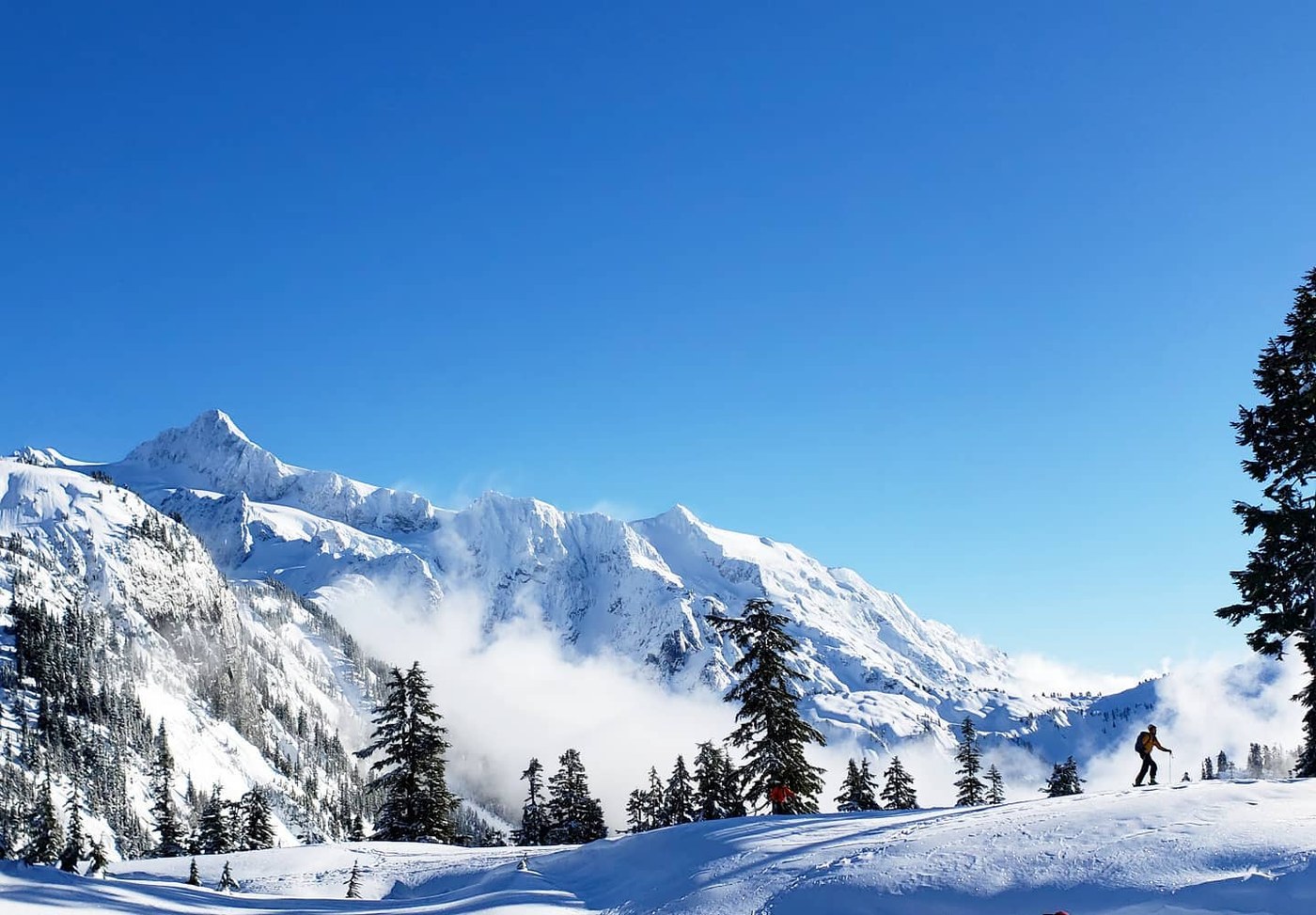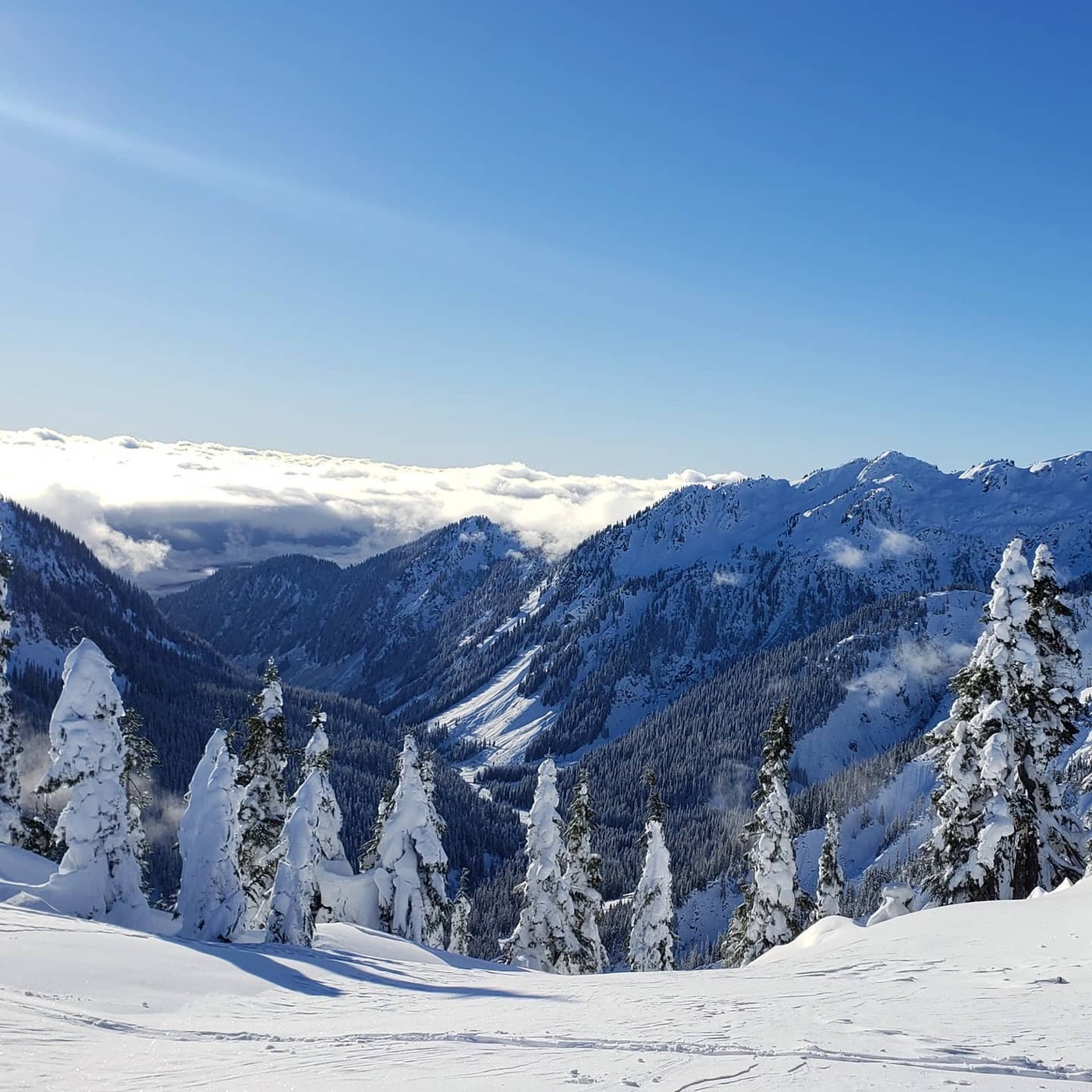 Snowshoeing around artist point and huntoon point was nothing short of spectacular! Arrived around 8:30am to a partially filled parking lot. Trail was somewhat difficult to find. Once on the trail, the path was somewhat easy to follow due to other packing down the trail with snowshoes. However, at times there were multiple paths going different directions which could be confusing. I would not recommend attempting this unless you have GPS navigation. A person could get lost! Snow is super deep and without snowshoes, you will be post holing most every step. Some cross-country skiers were out and about. The weather was perfect! Minimal wind, full sun and clear skies. Later in the day some fog rolled in and covered some of the lower laying areas. Despite going on a Tues, the trail was still very busy! Rd to baker was icy and snowy. I would recommend driving something with 4wd and good tires. Not much of a guardrail (if any) if you were to slip off the rd.