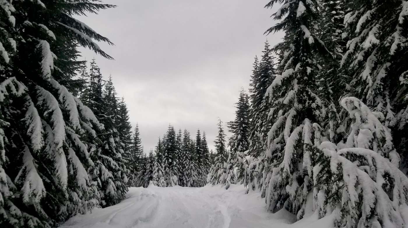 Similar to the previous trail report, we parked at the final right turn where the trail forks to the right from FR-6830. Our party had two cars: a Subaru Outback and a Subaru WRX Hatchback. Lots of big potholes on the forest road and once the ice and snow started a few miles in, the Hatchback couldn't make the last mile on the road to our parking spot due to clearance issues but the Outback was fine.