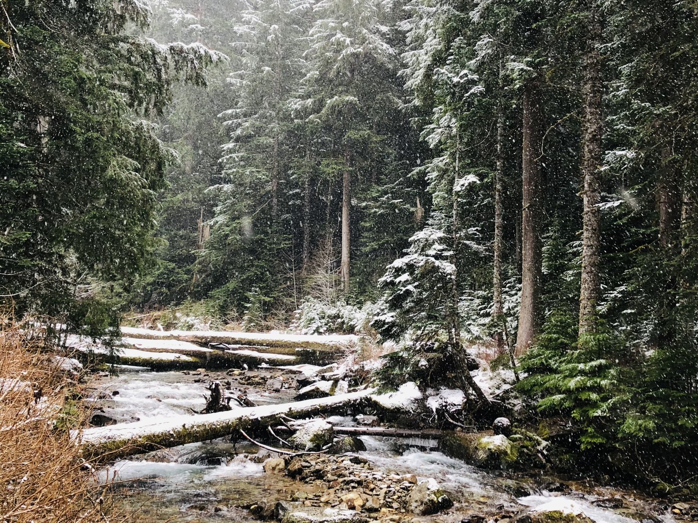 The trail itself had a fair amount of downed trees but all were, again, easily triumphed (though some required more balance and flexibility than others). Stream crossings were fine, very little ice. Some intermittent snow but did not use snowshoes or traction devices. We went as far as the Pilot Ridge junction before turning around, though conditions appeared the same as far as the eye could see around the next corner.