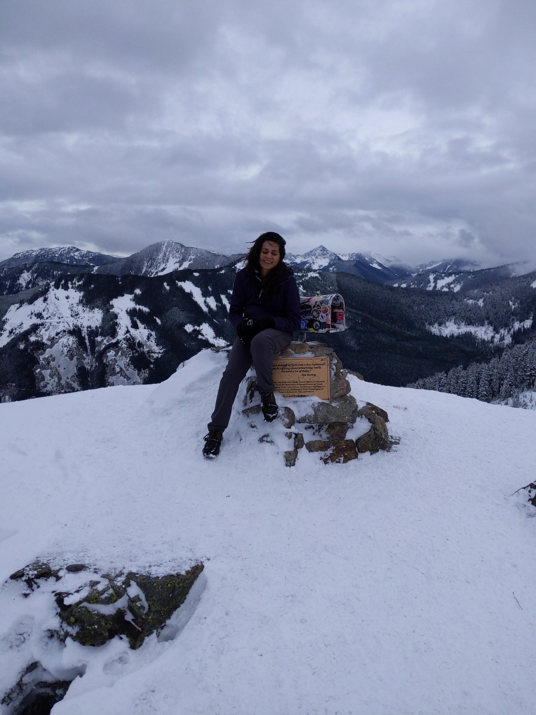 The last scramble to the top is terrifying if you are not prepared. Highly recommend poles and microspikes... I was using yak trax, which I didn't realize were broken until I put them on when we reached the first bit of snow. There's a very little to grip on when you're in the snow heading up in those last hundred feet or so. But made it to the top! Extremely rewarding, absolutely breathtaking views, so worth the experience. Had a sip of mailbox beer and it was the best beer I've had in a long time!