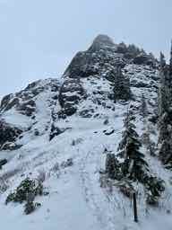 Today’s hike was very reminiscent of the Lion the Witch and the Wardrobe: rain, mist, snow, pushing under heavily snow-laden evergreens, and finally Mt Si's Haystack looming out of the mist so a little magic too :-)