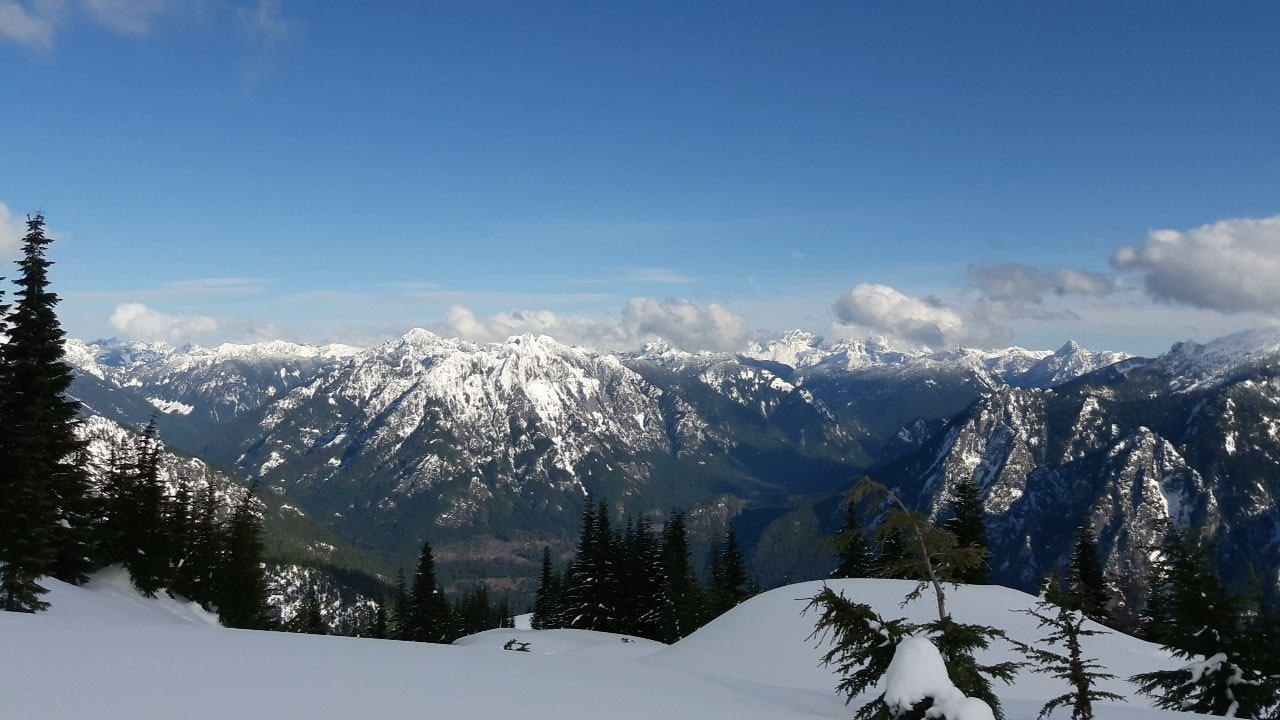 Hiked up / skied down Bessemer Mountain. Unexpectedly lovely day! Trail is manageable, although it's covered in snow-- snowshoes strongly recommended if you're going higher than the quarry at 1500'. Snow is very wet and heavy. Clear snowshoe track all the way. Did not see a single other person.