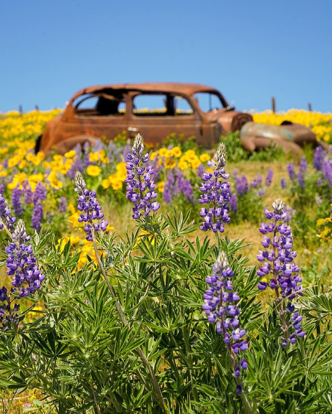 I set out to see some wildflowers this weekend, and Columbia Hills did not disappoint! I tried to park at the Crawford TH but the car in front of me got the last spot around 9 AM. It’s a tiny lot but there are lots of other trails nearby. Stacker Butte was plan B for my group. It has a beautiful view, but we got a little bored of the road hike so we turned around before the top. There are also less wildflowers the farther up you climb. We finished off with hiking down to the famous car in the Dalles Mtn Ranch area. There were a lot of cars, but it never felt too crowded with how many options there are here. Now is the time to go! No rattlesnake or tick sightings.