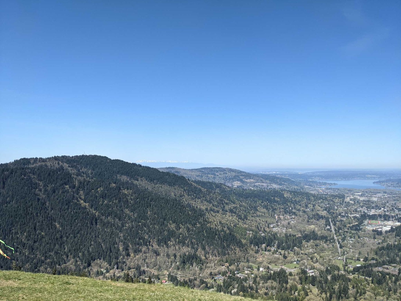 Beautiful day for the hike. We got there at about 9am and waited for 20 mins for a parking spot to open up. Hike was in a great condition and weather was just perfect. Lots of people on the hike, many were mask less which was unfortunate. Clear view of Mt Rainier from the top. Got to see a bunch of paragliders take off as well.
