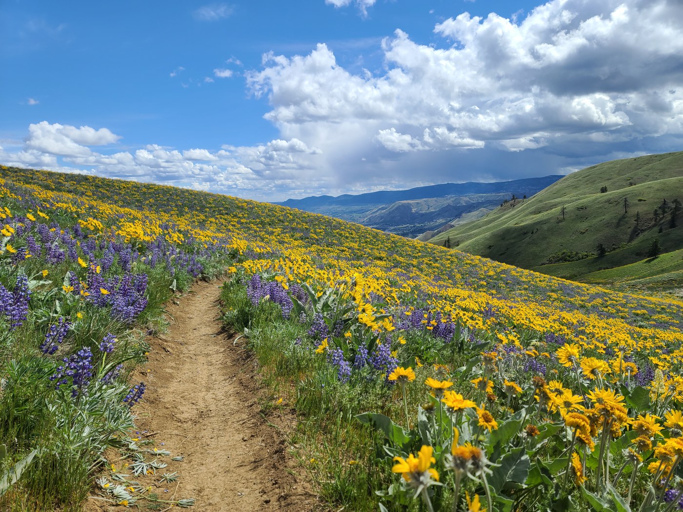 The flowers are in full bloom, and honestly the best bloom i've seen out here in a number of years. The trail was busy but not crowded, great condition. I would suggest downloading a map of similar ahead of time. Quite a few groups of people asked us directions and were quite a distance from the trailhead.