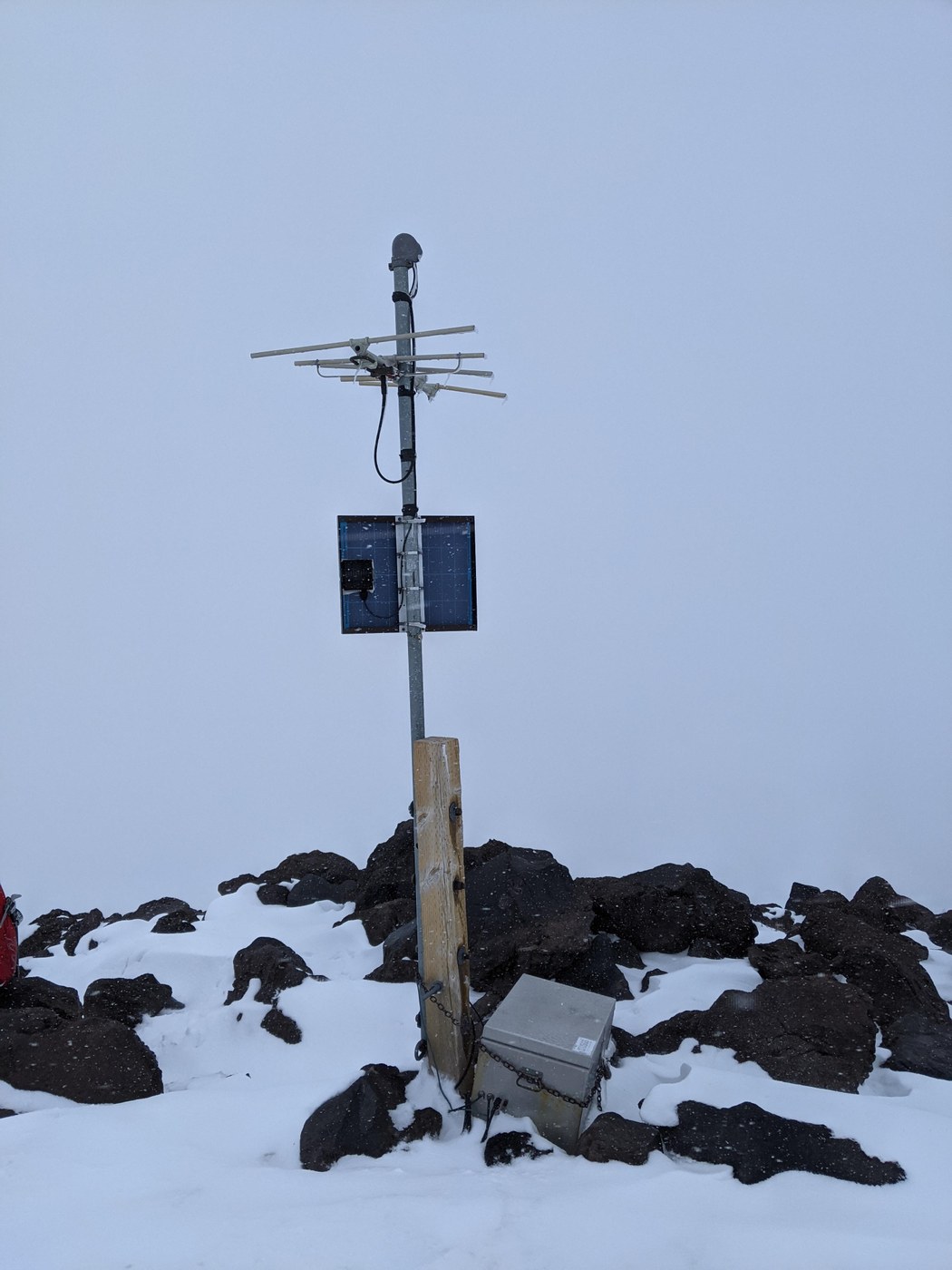 It was poor visibility at the crater rim. We just imagined what the crater looked like in the summer, and called it good. Miraculously, the snow stopped about 40 minutes at the summit while we ate a snack and rested a bit before trekking down.
