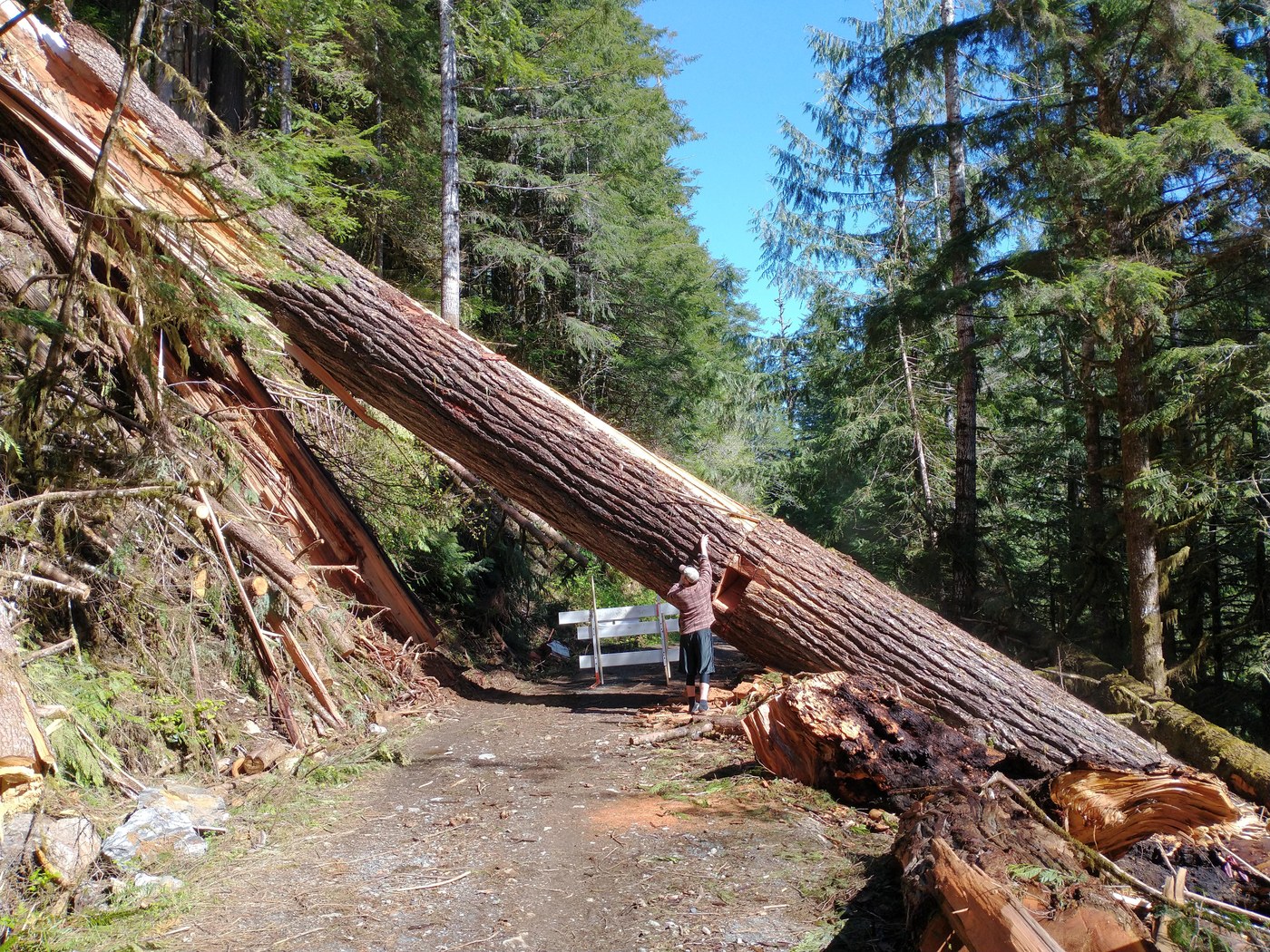 Yeah, that one looks like it should be handled by the professionals (loggers) - probably why they left the tape. That situation could go south in a hurry in the hands of an amateur.