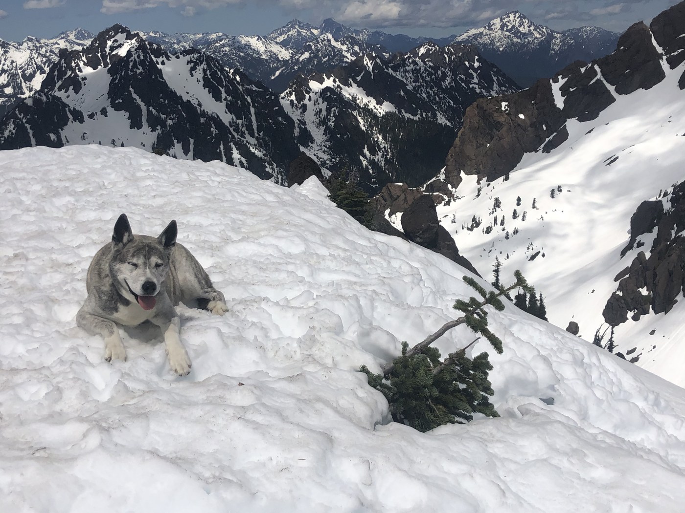 Winter route is in great shape and the glissade was awesome on Lilly’s (pup in the first pic) 13th birthday adventure! Conditions should remain excellent this weekend so get out there!
