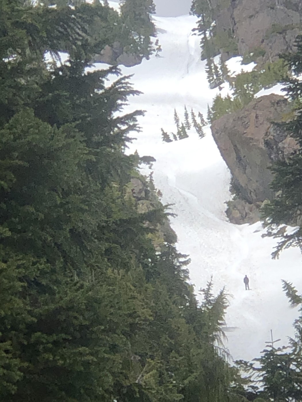 I used spikes and poles, but the intrepid—including a newbie hiker I met on the trail—can make it with less gear. Note, though, that most others used helmets and ice axes. Travel at your own comfort and risk levels and be snow aware! Also remember to bring rain pants and gloves—or better yet, a large trash bag—for a faster, drier, and more exciting glissade 😃