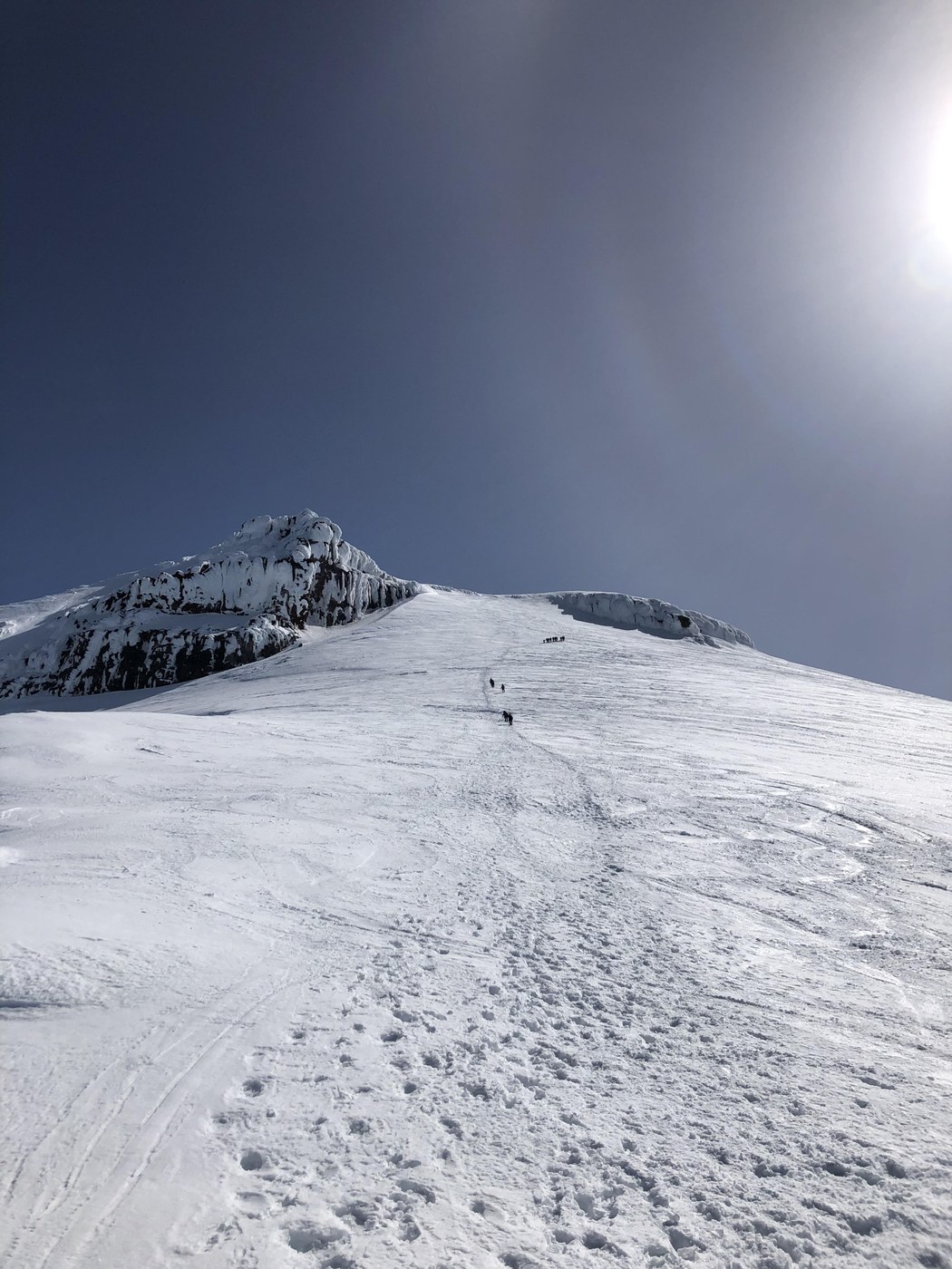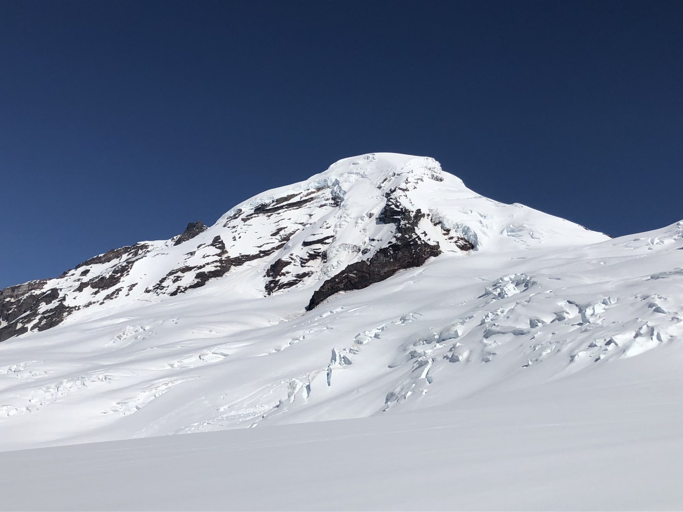 Trip Report for Baker summit climb, Colman-Deming Route. Trailhead to camp 5/14/21, summit day 5/15/21, camp to trailhead 5/16/21. Road closed due to snow 1 mile from trailhead. Clear sunny weather. Not forecasted to, but froze overnight both nights. Hot days. Nice hard ice to walk on in the morning on summit day in the shadow of the mountain, didn’t get slushy until around 1 PM. Clearly marked boot path from trailhead to summit. We passed four crevasses, one underneath the boot path right above high camp (Black Buttes) that a couple people punched their foot through, one partway up the glacier with a nice snow bridge even on the slushy way down, and one further up the glacier that you can walk around. The fourth my partner saw on the way out the third day on the steep 45°-ish slope between high camp (Black Buttes) and low camp (Hogsback Camp & Gargoyle Rocks). Roman Wall (60° slope/last push to the summit plateau) is steep on the way up but not too bad if you take it at a moderate pace and follow the stair steps and switchbacks on the boot path. Start early enough that you hit it before slush like we did. Roman Wall is harder on the way down but we just stepped really slowly and carefully on the steepest switchbacks at the top then plunge stepped the rest of the way straight down the slush once it was not quite as steep. There are nice butt glissade chutes from high camp to low camp, low camp to ridge, and ridge to treeline.