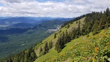 Got to the trailhead around 11 and there was only room for 3 more cars at the pullout just before the actual parking lot which was PACKED. People were parking in creative ways. The restroom is a tiny walk up the trail and was out of toilet paper. Definitely not the hike for solitude, but great for catching the balsam root before it's gone. Went up the difficult side and down the Augspurger trail where there was 1 log to hop over. Damp in areas, but not muddy. Shout out to all the dog owners I encountered that were being so respectful of people and other dogs! For such a heavily trafficked trail, I was surprised to see absolutely no trash. Poison oak is especially plentiful on the trail up. No water sources available. Bugs were present, but not bothersome at all.
