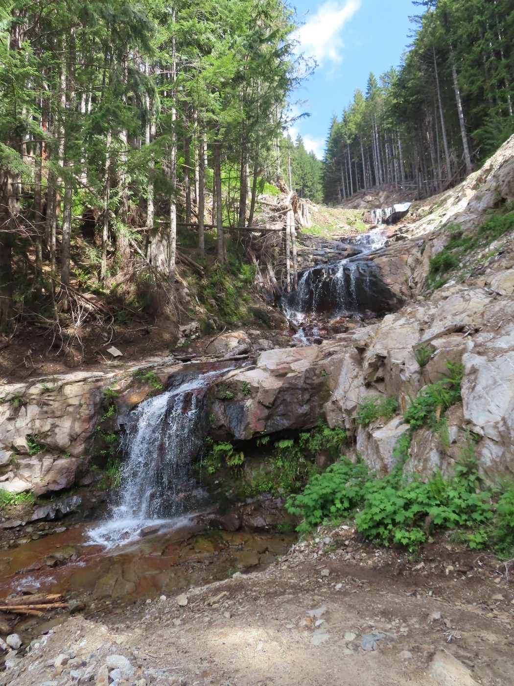 I met only five other hikers on my trip and three mountain bikers. No crowds like the Mail Box Peak Trail. If you enjoy waterfalls, check this one out. At the blue gate at the start of the Bessemer Road, DNR still has their "Road Closed" sign for road construction, even though the road work has been completed with new culverts installed, the road cleared of mud and trees on the DNR section of this road. The upper section of the road by the waterfalls is on Forest Service land. George