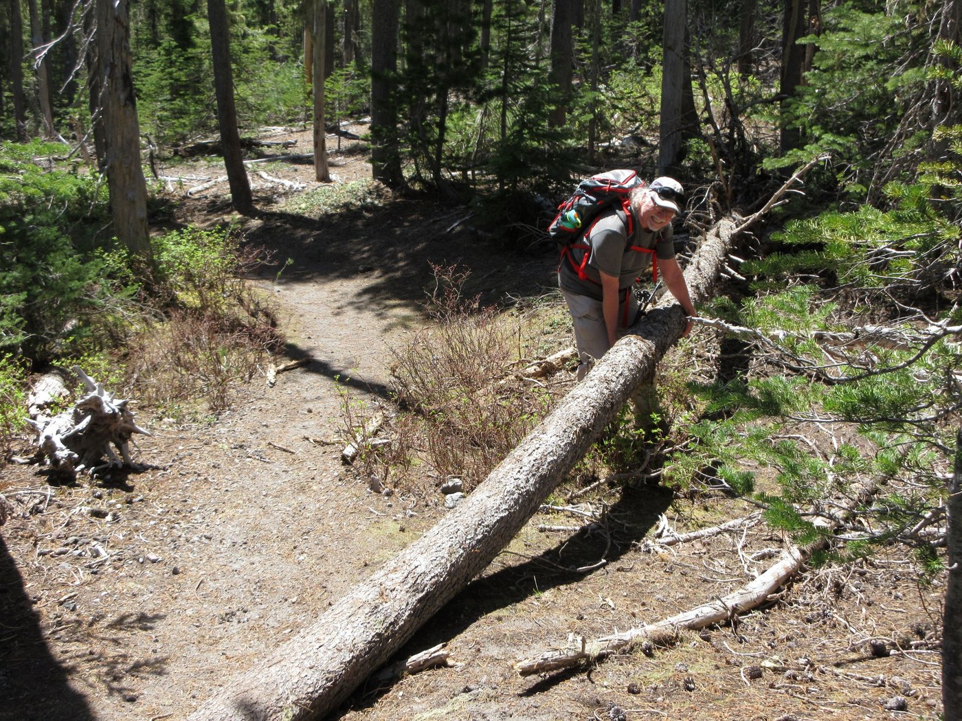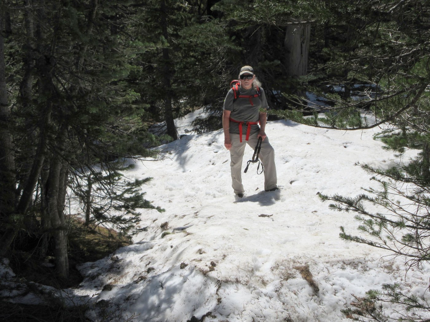 Started early afternoon at Red Rock Pass and continued north to Butte Camp, saw only 3 other hikers who were on their way out. A half dozen easy to step over trees across the trail, but it is in good condition with snow patches beginning just past the Kalama Ski trail junction. The size and number of patches gradually increased until it was almost all snow at Butte Camp around 4,000'. The snow was soft enough to not need spikes. Traces of ground trail were visible, and with gps for navigation, we were able to cross the stream at the Camp area and continue toward the Loowit Trail on partially snow-free switchbacks. The snow-free exposed traverse starts around 4,400' and goes for about 1/10th of a mile. Based on the few previous reports I found, it has apparently deteriorated since last year. There is at least a couple hundred feet of very steep rocky slope below the traverse path. The "trail" is maybe a foot wide and is unstable with loose pebbles and a couple of spots moved when I touched the surface with a pole. It would be extremely dangerous to meet a hiker going in the opposite direction on this stretch because there is no safe room to step aside. Having said that, a fall there would likely result in serious injury. After the traverse, we hit almost continuous 3 - 4 feet deep snow again and turned back at 4,500' due to tree well hazards and potential holes under the snow surface. Otherwise, the trail to Butte Camp is very pleasant and the view of St. Helens from the lava field is awesome.