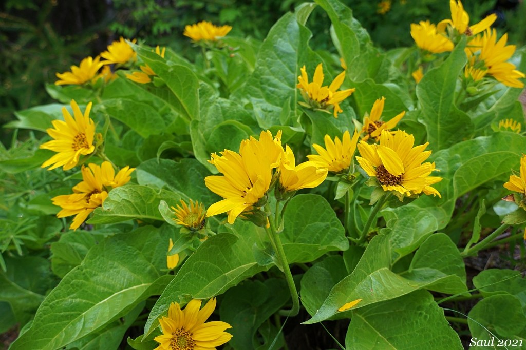 After a lunch break, we walked the mile-long Monte Carlo ridge crest through woodlands and meadows filled with blooming wildflowers and busy pollinators. At one meadow, at the top of some cliffs and talus slope, we enjoyed views across the Little White Salmon valley to Little Huckleberry Mountain at the west end of the Monte Cristo range and the high points on the spine of Indian Heaven. On a less cloudy day, we might have been able to see Mount St. Helens.