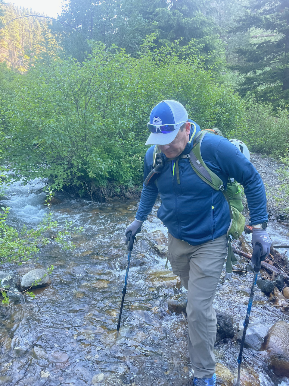 The creek crossing was a bit high, but it's still early season. You can keep your feet dry, but probably not with trail runners. Sandals or high tops are a good idea and trekking poles are wise for stability.