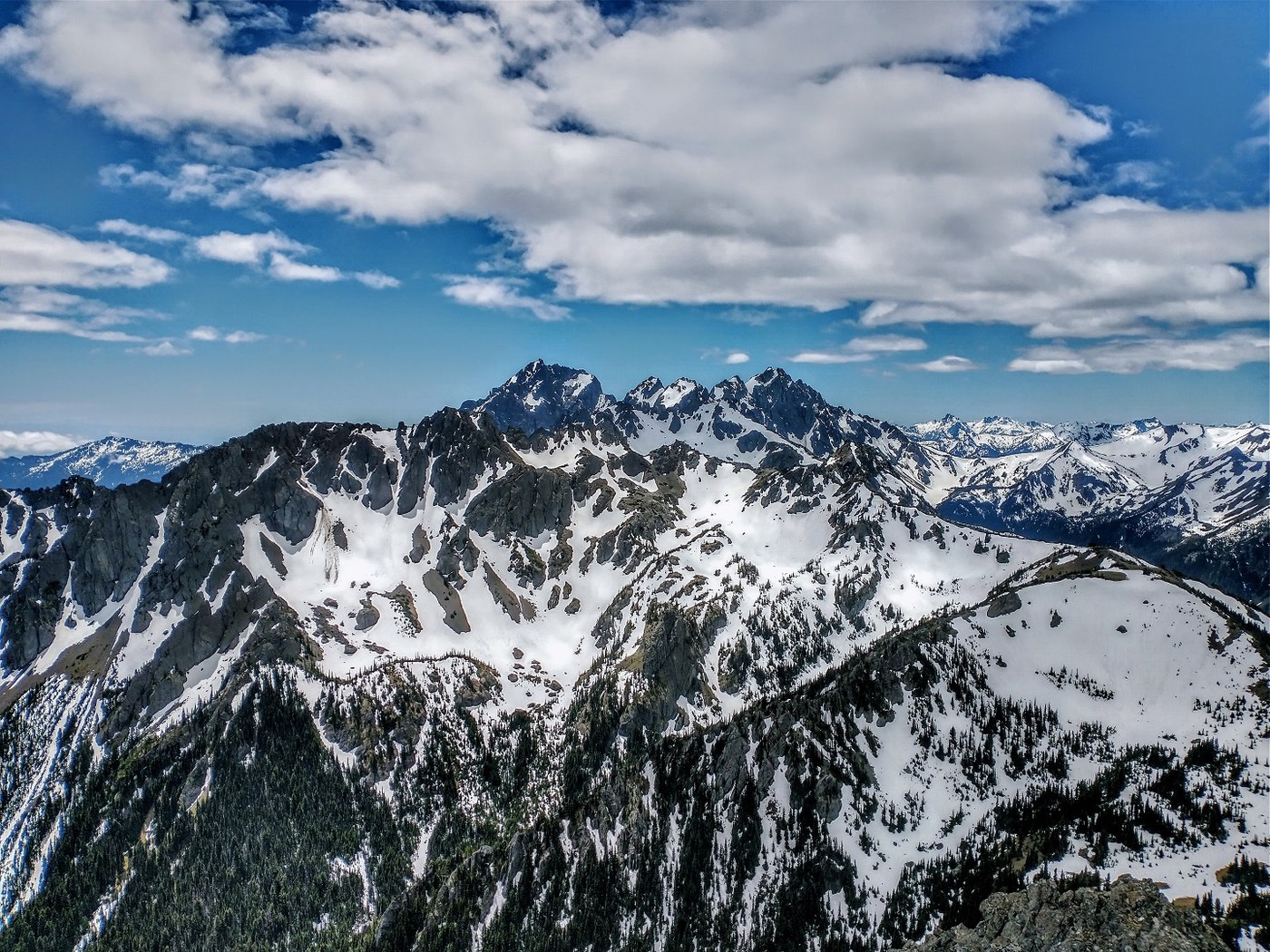 The pass to the top of Buckhorn is completely snow-free. It's a bit of a scree slog as you make the push to the top. However, jaw-dropping views to the south and the interior make it worth the extra effort! After a few false summits, you'll be at the block and just a short fun scramble to the top.