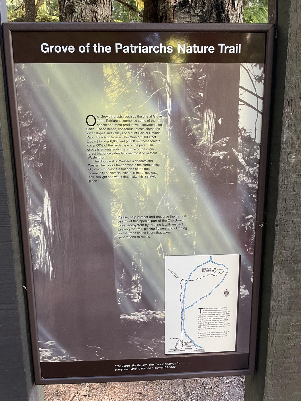 Weather was perfect on Sunday morning, sunny and cloud free, and we got there at 8:00am. There was only 1 other car in the parking lot so we were lucky to have the trail to ourselves for the first half. You'll reach the lot to your right, after entering the Stevens Canyon Entrance where the rangers will check for your pass or you can purchase one, we used our America the Beautiful Natl Parks pass (make sure you sign the back of the card!) There are restrooms, water fountains, and a decent amount of parking spots but they'll fill up quickly.