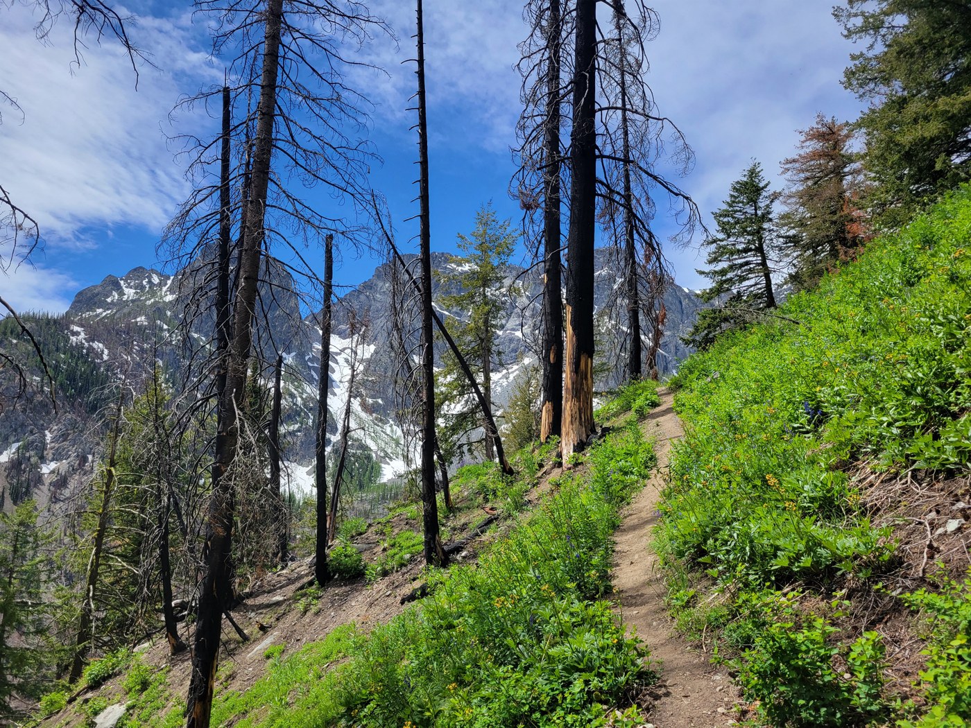 Trail has lots of downed trees, a few within the first mile, then a clear stretch, and then a few within a mile of the lake.