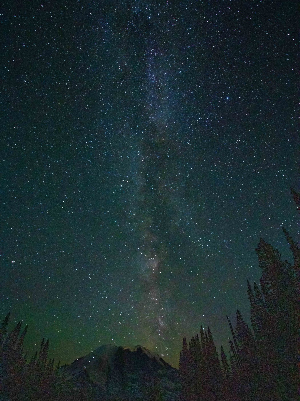 The Milky Way was prominent that night, shot some images around 2 AM with the wide angle lens. The mosquitoes were pretty bad in Grand Park and relatively active in Berkley Park. Next morning proceeded back to Wonderland Trail and then westward to Mystic Lake. Loads of lupine in bloom along WT just east of Skyscraper Pass and then again in the forest above Granite Creek. The section of trail a mile below (east) of Mystic Lake is still messed up as it makes a short climb out of the gully which took a hit from a debris flow many years ago...trail crew seems unable to do anything about this.
