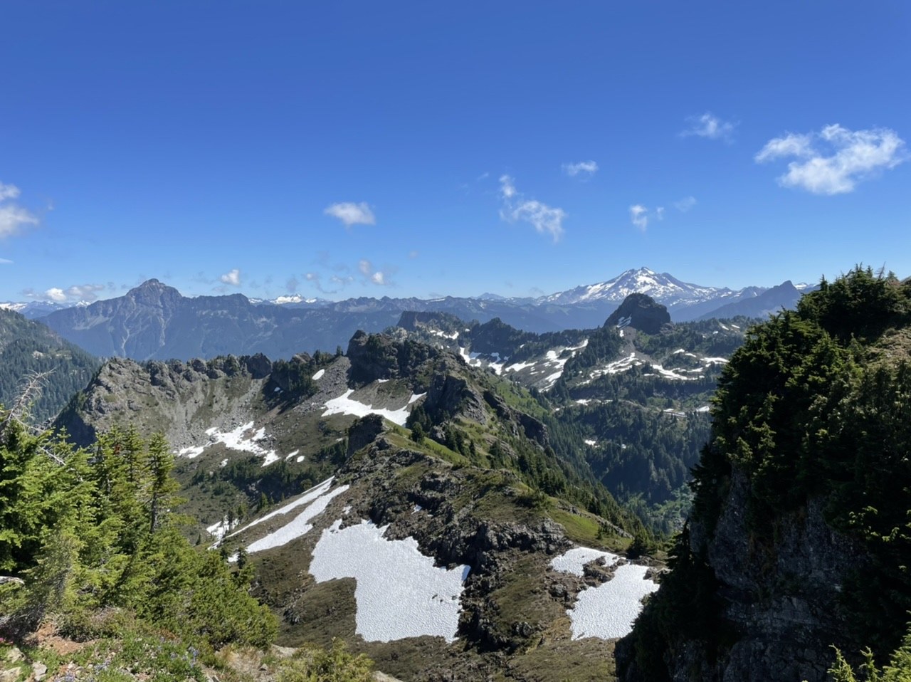 Found the trail to be surprisingly not too busy for a sunny Sunday. TH was probably a little over 1/2 full at 7:45, but that’s for both Dickerman and Perry Creek. Full trailhead with a few extra cars when we came back down. Apparently everyone was at 22 - there were way too many people parked partially in the road - came around a curve on Mountain Loop Highway to find cars in the road 😡